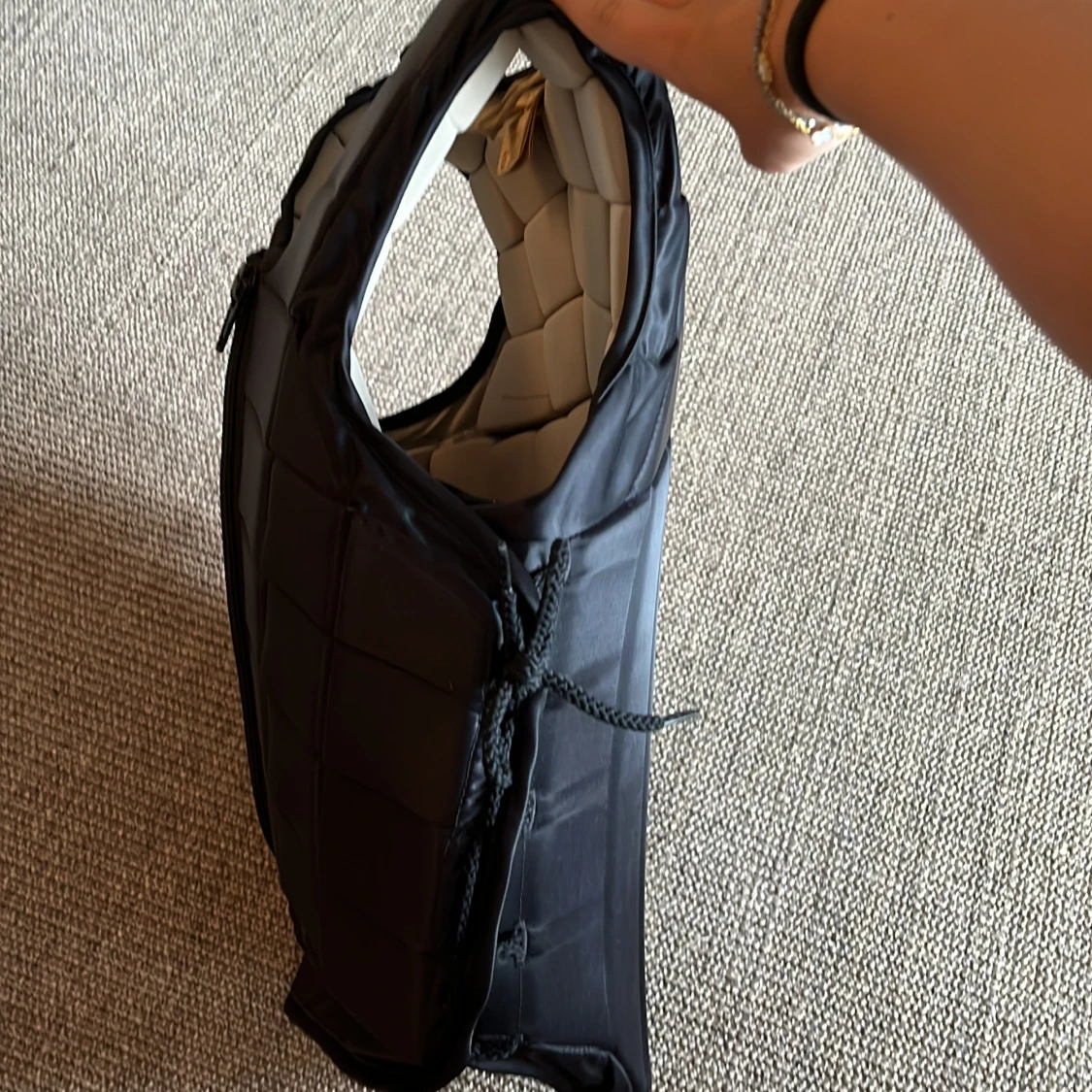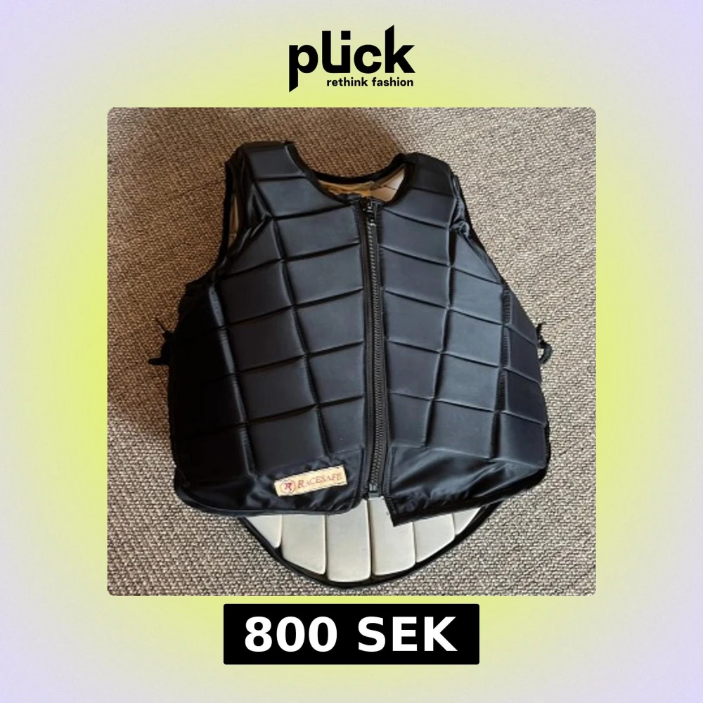 Säljer denna svarta ridväst från Racesafe. Den är i ett gott skick utan några defekter. Den är i storlek L junior vilket jag skulle säga motsvarar XS i damstorlek och den är BETA Certification Markt!