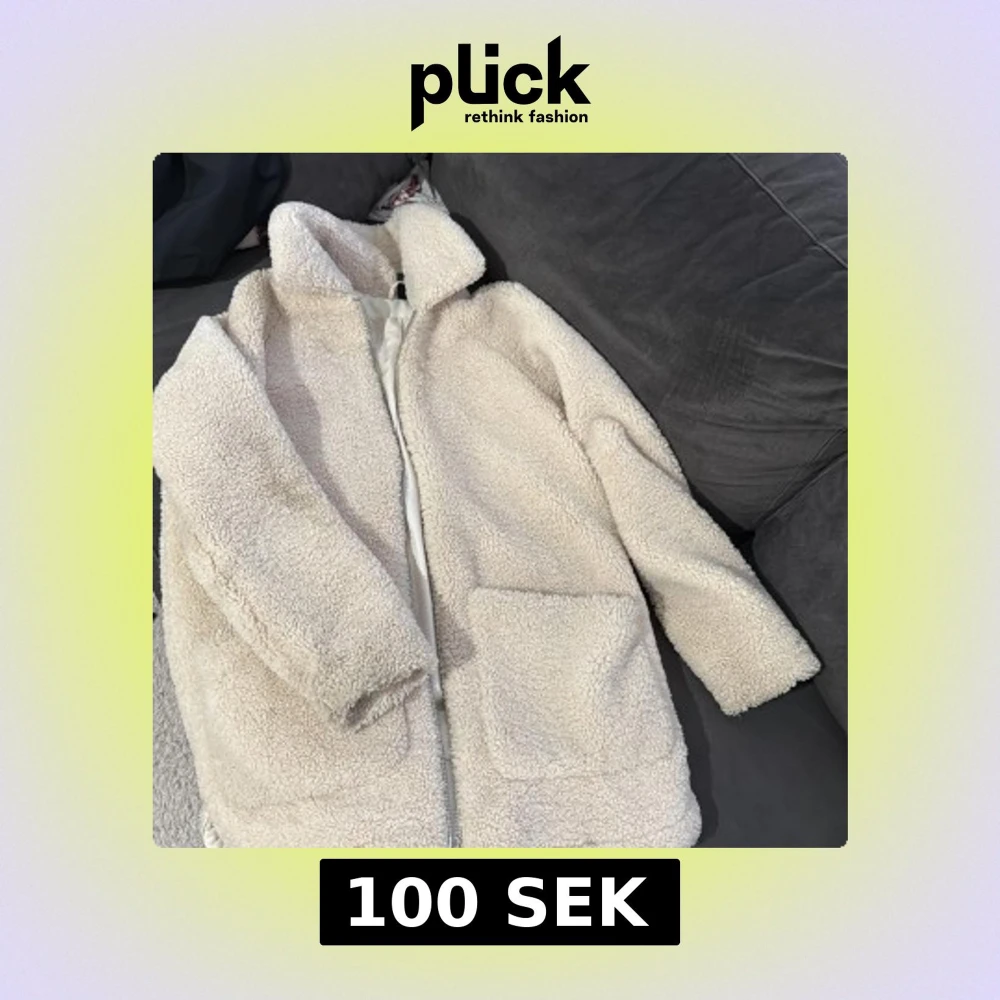 Mysig beige teddyjacka med långa ärmar och dragkedja. Perfekt för kyliga dagar när du vill hålla dig varm och stilren. Jackan har en klassisk krage och stora fickor framtill. Storlek XS men passar även som S