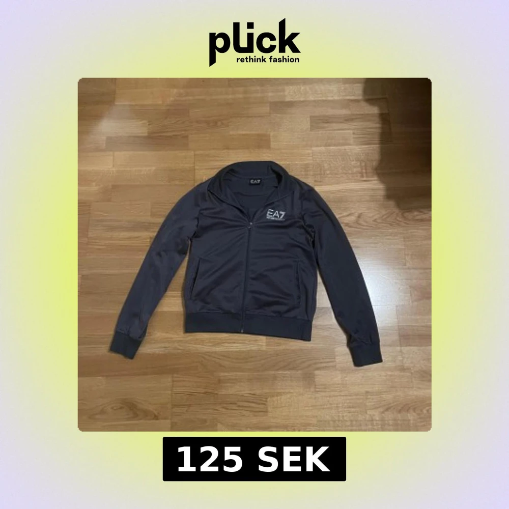 Snygg grå track jacket från EA7 Emporio Armani med vit logga på bröstet och diskret detalj på ryggen. Jackan har hel dragkedja, ribbade muddar och två fickor framtill. Perfekt för en sportig och stilren look.