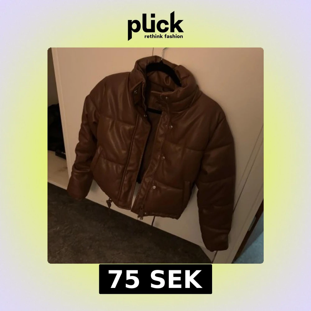 Snygg brun pufferjacka med hög krage och dragkedja framtill. Jackan är quiltad och har en cool, boxig passform med dragsko nertill. Tillverkad i skinnimitation som ger en trendig look. Perfekt för dig som vill sticka ut i höst och vinter.