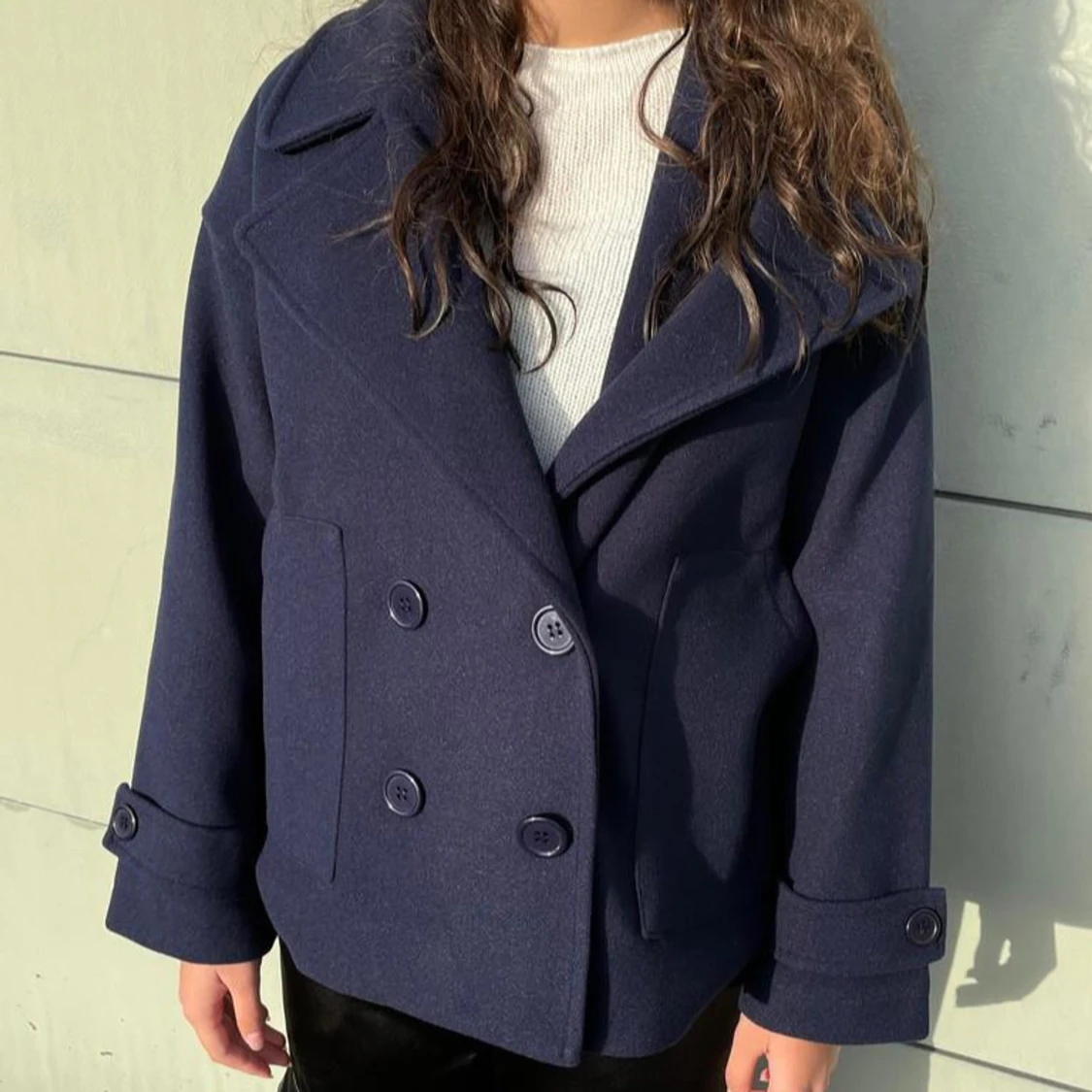 Snygg mörkblå kort kappa men som tyvärr inte kommer till användning. Nypris ca 750kr