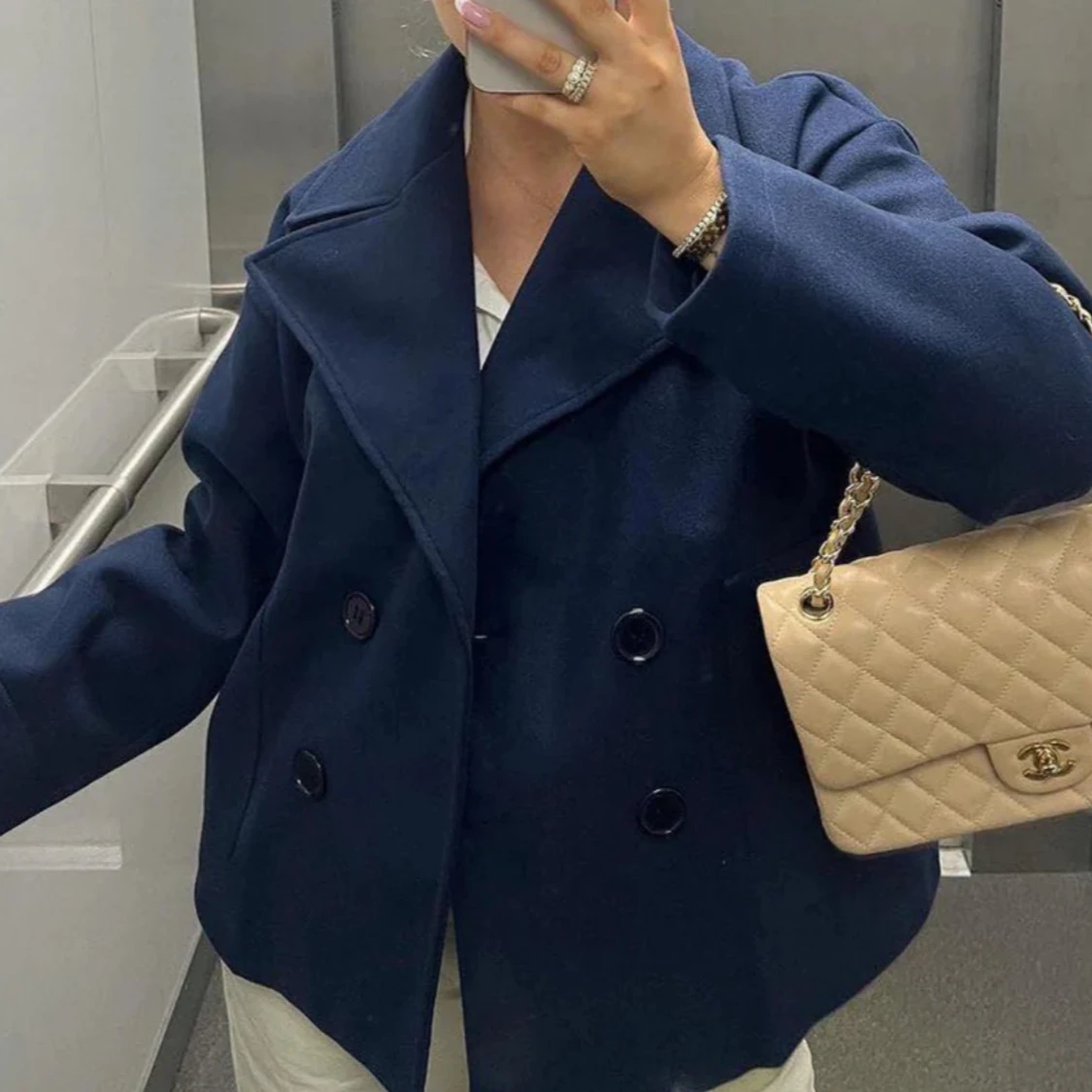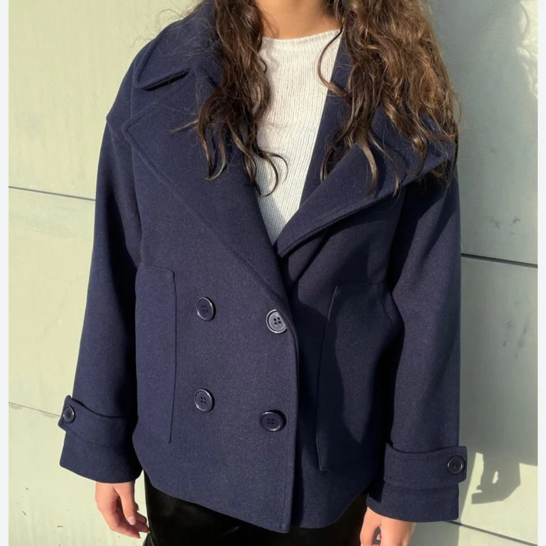 Säljer en snygg mörkblå kappa från Design by Si. Jackan har dubbelknäppning med stora knappar, bred krage och långa ärmar. Perfekt nu till hösten! Bara använd ett fåtal gånger och skulle säga att skicket är precis som nytt! Det ändå är att själva lappen med märket på på insidan av jackan har lossnat lite men det är inget stort och märks inte som ni ser på sista bilden! Storlek xs/s, köpt för 760kr och skicket är väldigt väldigt bra!!