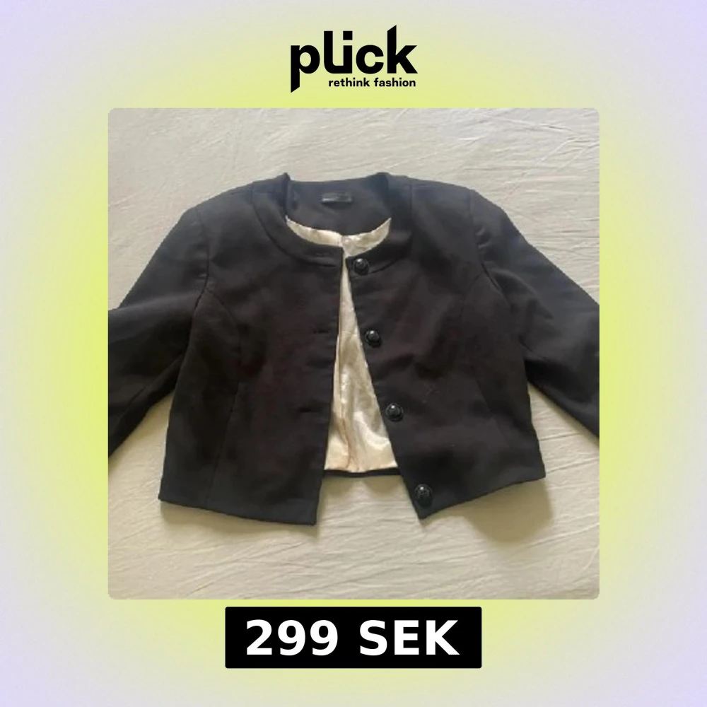 Stilren svart kavaj med rundad krage och tre stora knappar framtill. Jackan är croppad och har lång ärm samt ljus insida. Perfekt för dig som vill ha en klassisk och clean look.