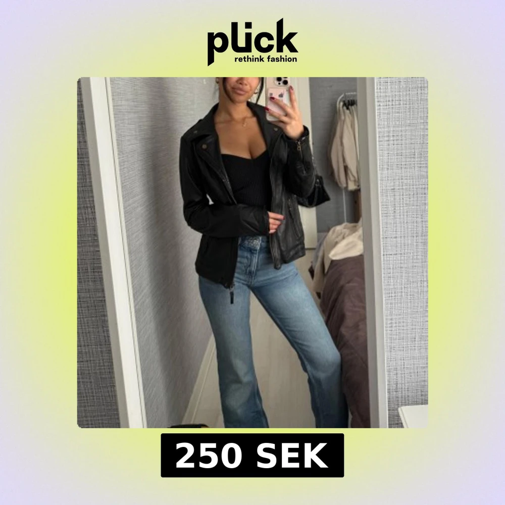 Säljer en svart skinnjacka som är en perfekt vårjacka. Den är lite figursydd så den framhäver kroppen väldigt snyggt. Passar till allt och funkar båda i vardagen men också perfekt för en utekväll!