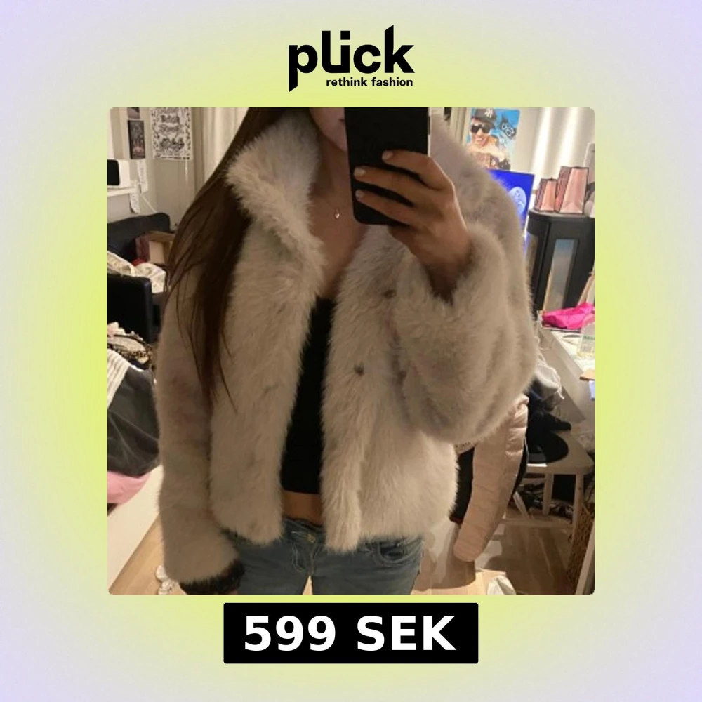 Säljer en fluffig och stilren vit pälsjacka med knappar framtill. Jackan har en klassisk krage och långa ärmar, perfekt för att hålla sig varm och trendig. Från Vera Moda 🥰knappt använd