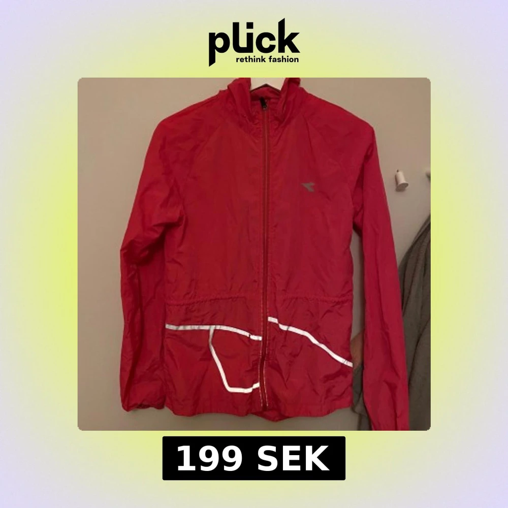 Sportig röd vindjacka från Diadora med hel dragkedja, huva och reflekterande detaljer framtill. Jackan har meshpanel på ryggen för extra ventilation och är tillverkad i lätt polyester. Perfekt för träning utomhus när det blåser.