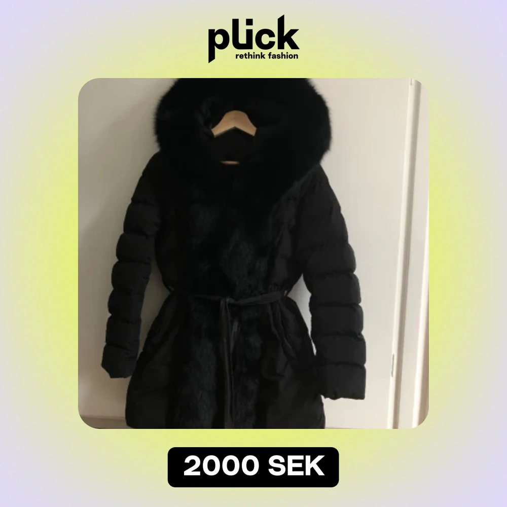 Jag säljer min svarta vinterjacka i dun och äkta päls med ett svart läder bälte till. Använd 2 vintrar men är i bra skick. Ett lagat hål i vänster ficka som inte syns eller känns och en mindre lagning inne i fodret. Storleken fungerar med S.