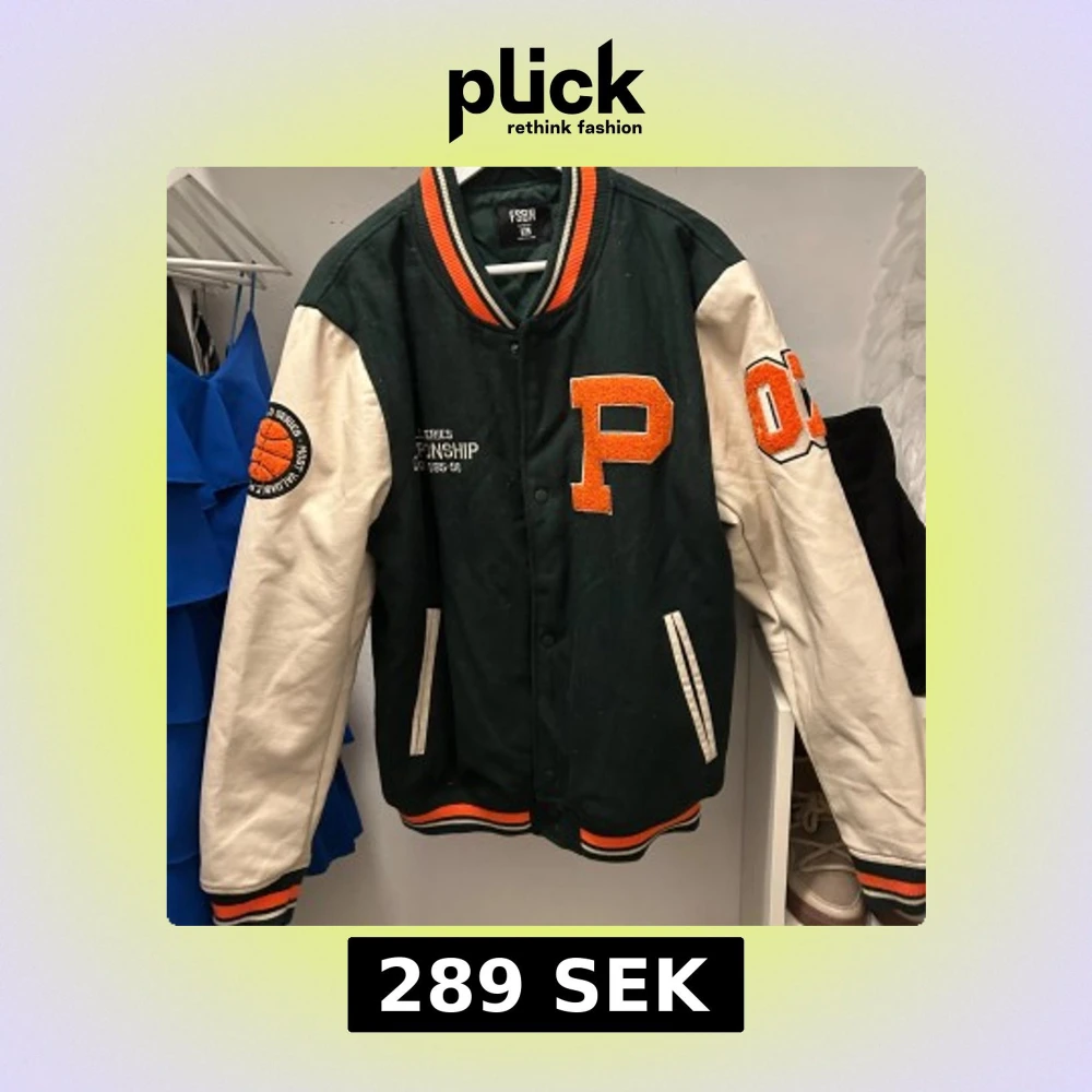 Snygg bomberjacka i college-stil från FSBN med grön kropp och vita ärmar. Stora orangea broderier, patchar och textdetaljer med baskettema och 'Championship' på ryggen. Ribbstickade muddar med orange och vita ränder. Perfekt statement-plagg för dig som gillar sportig vibe.