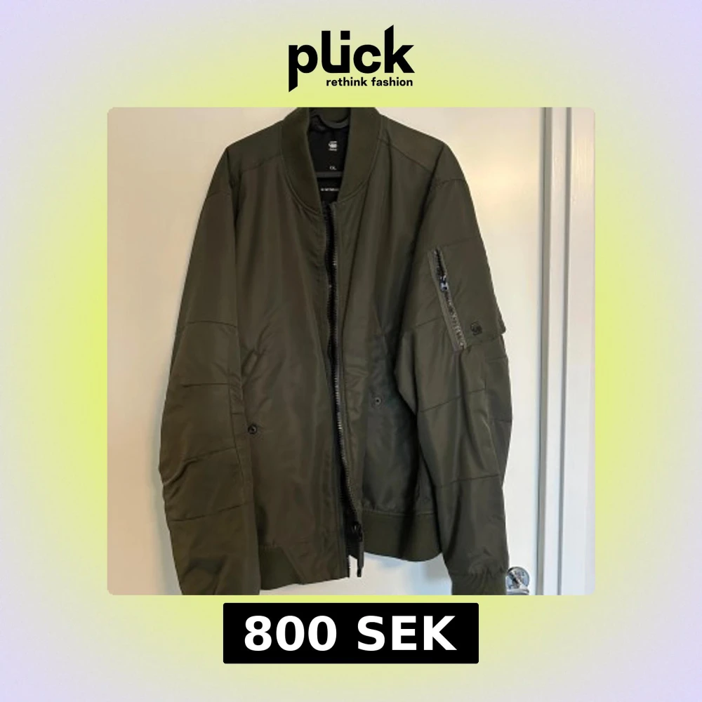 Snygg olivgrön bomberjacka från G-Star RAW med dragkedja framtill och en praktisk ficka med dragkedja på ärmen. Jackan har en klassisk bomberstil med ribbade muddar vid ärmslut och nederkant.