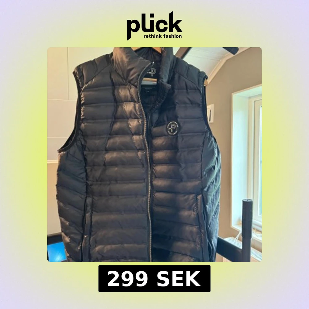 Snygg svart dunväst från Pelle P med quiltad design och dragkedja framtill. Västen har hög krage och ett broderat Pelle P-märke på bröstet. Perfekt att slänga över en hoodie eller tröja när det är kyligt ute. Ny pris ca 1500 och helt o använd men säljer endast för 299 priset är diskuterbart!