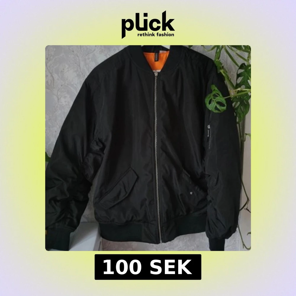 Säljer en ny klassisk svart bomberjacka med orange foder. Jackan har en dragkedja framtill och ribbade muddar vid ärmslut och nederkant. Perfekt för en cool och avslappnad stil. 🖤🧡