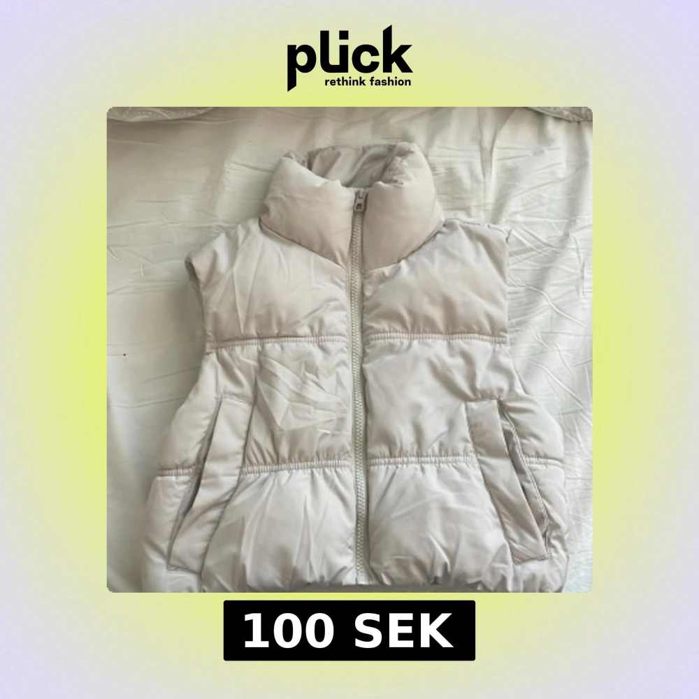 Säljer en fluffig och stilren vit dunväst från H&M Divided i storlek XXS. Västen har hög krage, två fickor framtill och stängs med dragkedja. Perfekt att slänga över en hoodie för en cool lager-på-lager-look.