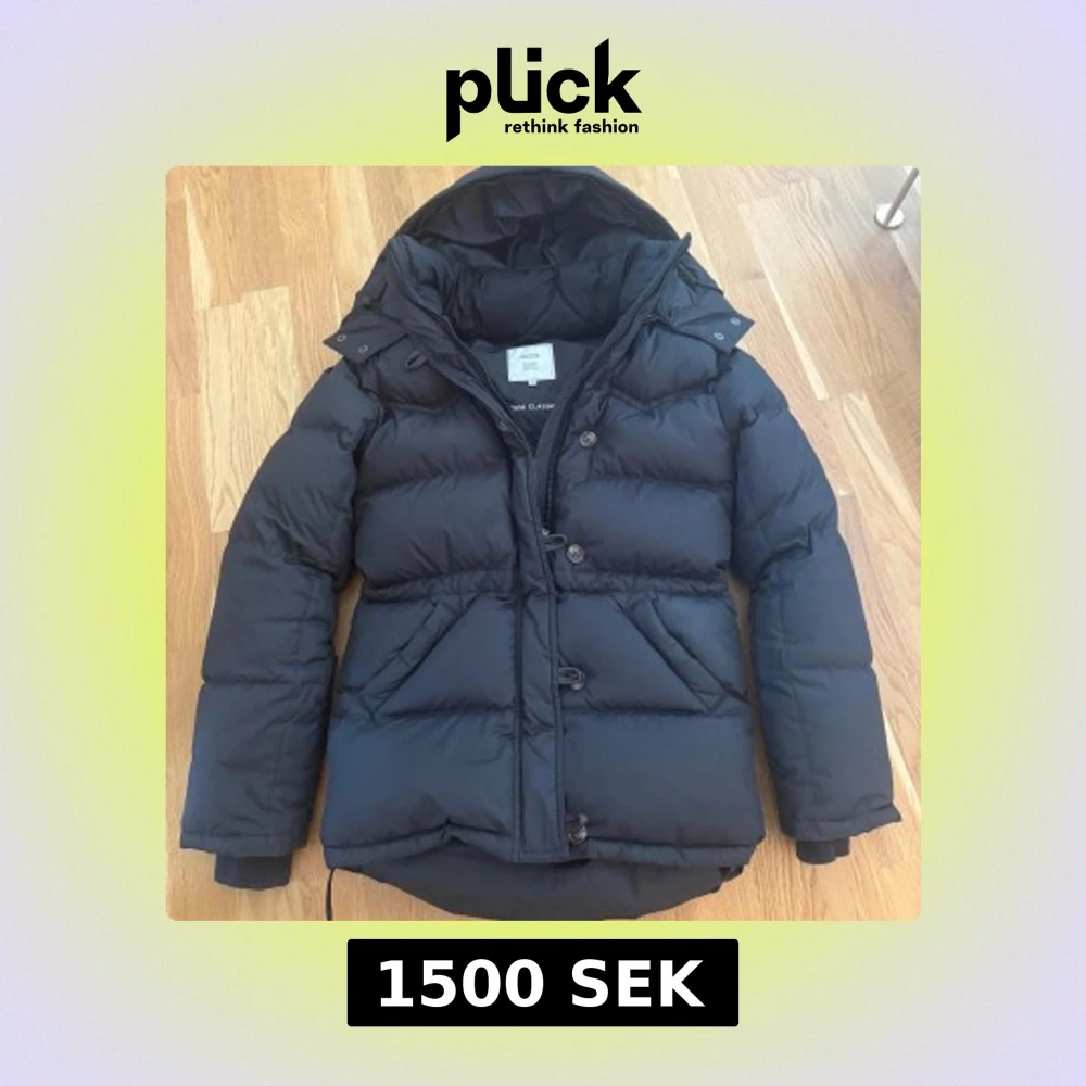 Säljer en svart dunjacka från Boomerang i storlek XXS. Jackan har huva, dragkedja och knappar framtill samt två stora fickor. Klassisk pufferstil med ribbade muddar och justerbar dragsko nertill. Perfekt för kalla dagar.