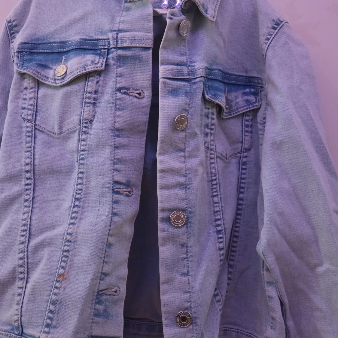 Snygg ljusblå jeansjacka med klassisk design och knappar framtill. Jackan har två bröstfickor med lock och knappdetaljer. Perfekt för en avslappnad stil.