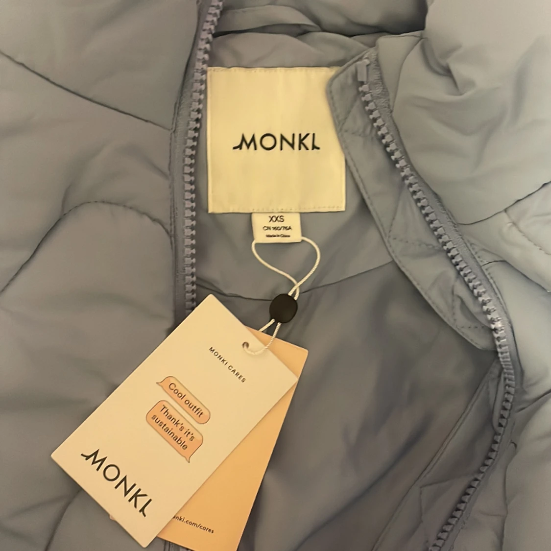 Säljer min fina blåa jacka från monki som jag älskar men har aldrig kommit till någon användning :/ jackan är stor i storleken så skulle säga att den även funkar på dom som bär xs och s