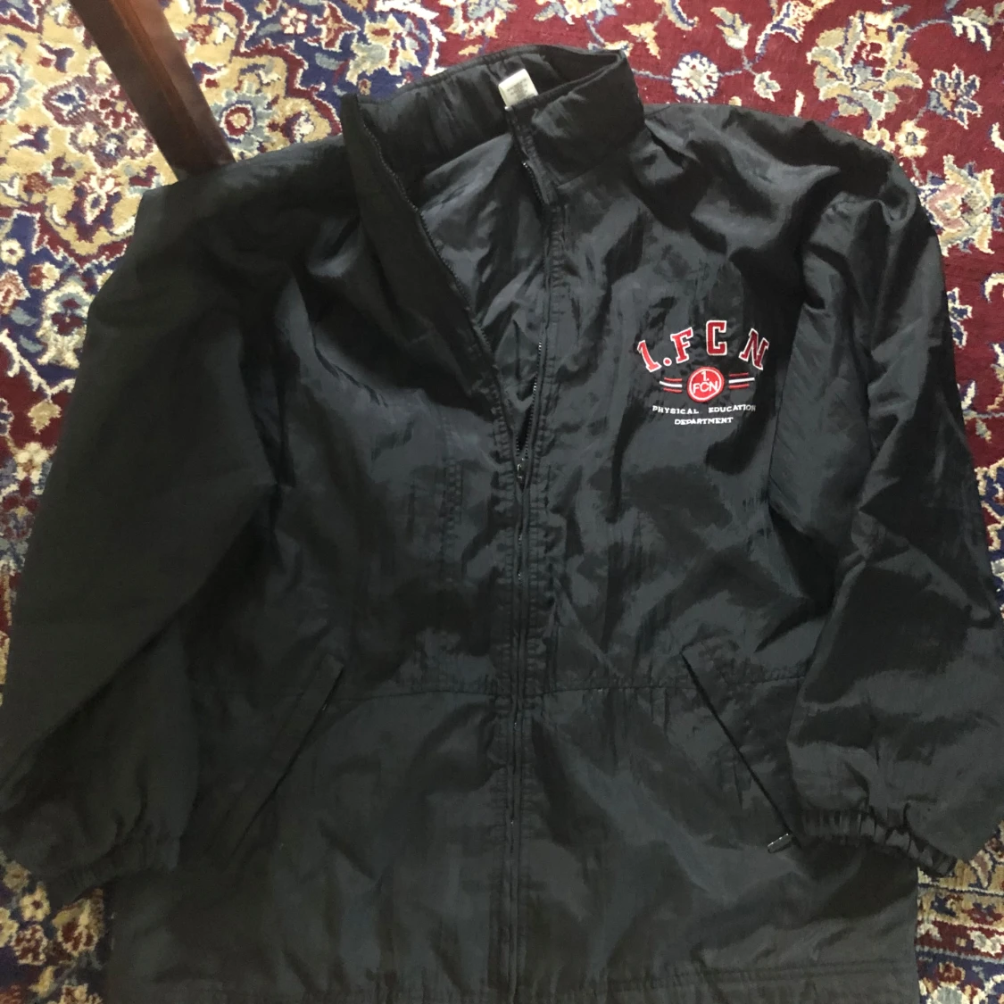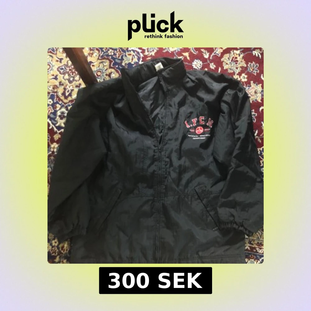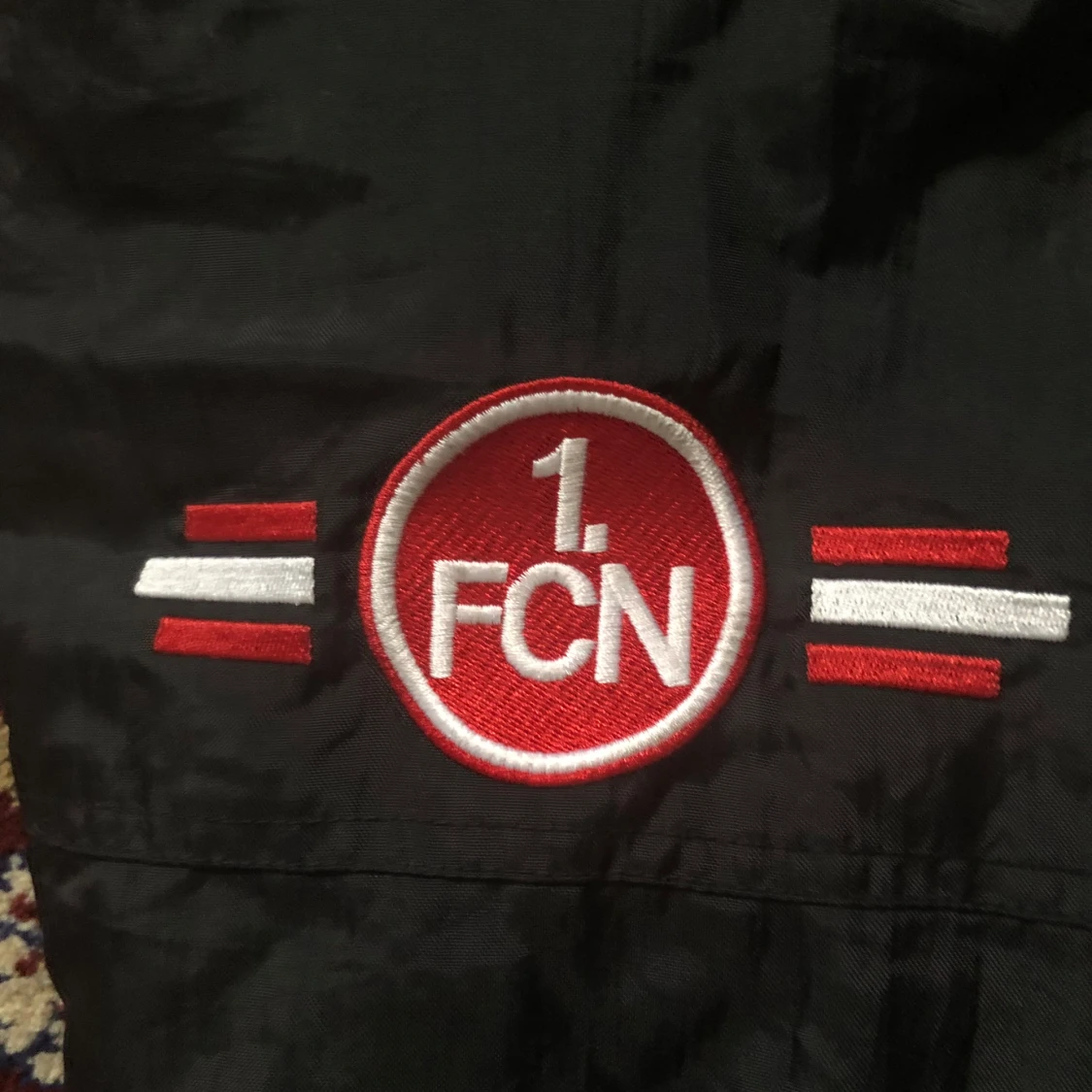 Säljer en svart vindjacka från Adidas med FCN-logga på bröstet. Jackan har dragkedja och elastiska ärmslut. Perfekt för blåsiga dagar har små fläckar på bröstet syns dock inte så tydligt .