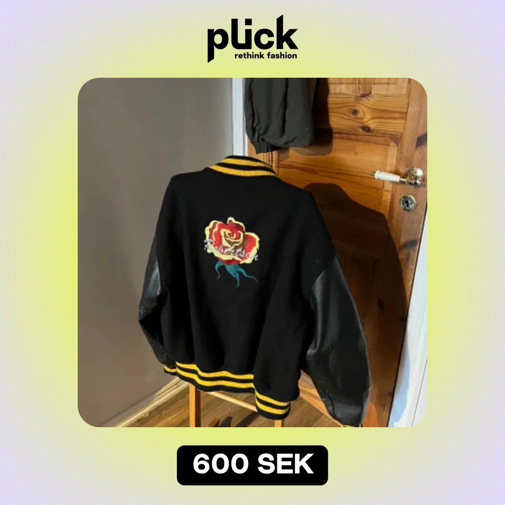Hej säljer nu denna snygga college jacka med gulrandiga detaljer vid alla öppningar. Jackans armar är i läder. Hör av dig vid intresse:) Storlek: Ytterarm: ca 63 cm Innerarm: ca 52 cm Längd: ca 67 cm Bredd: ca 60 cm