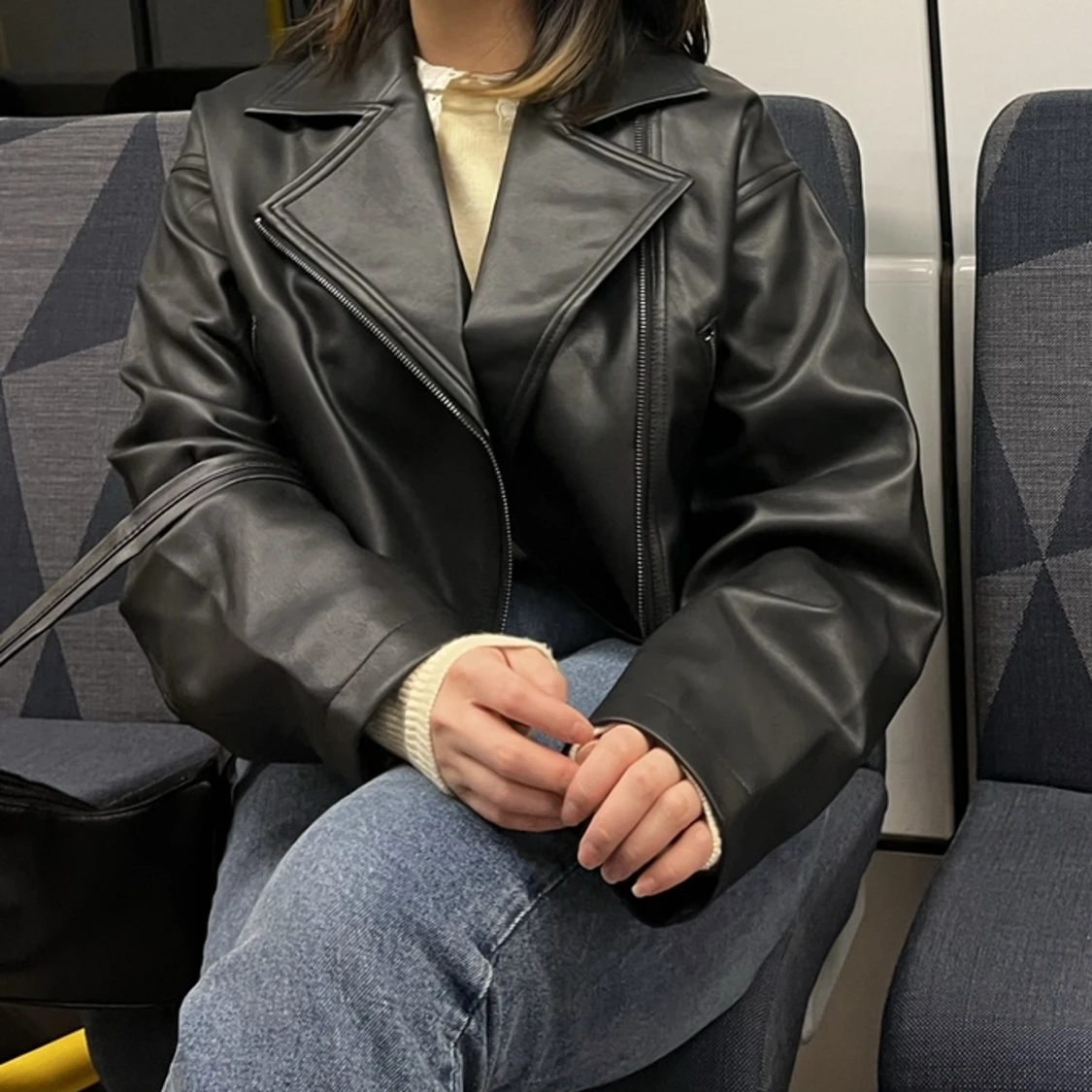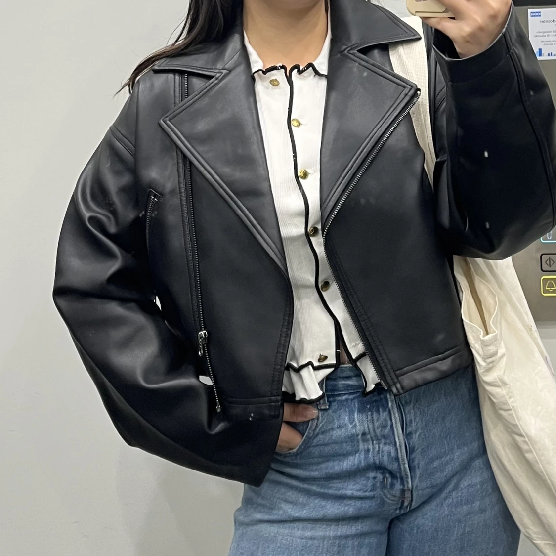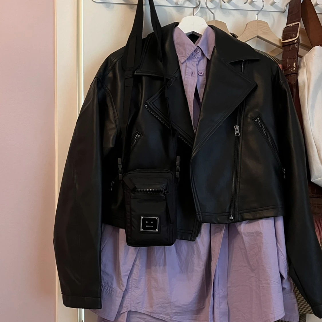 superfin croppad jacka i läderimitation 🤍 sparsamt använt
