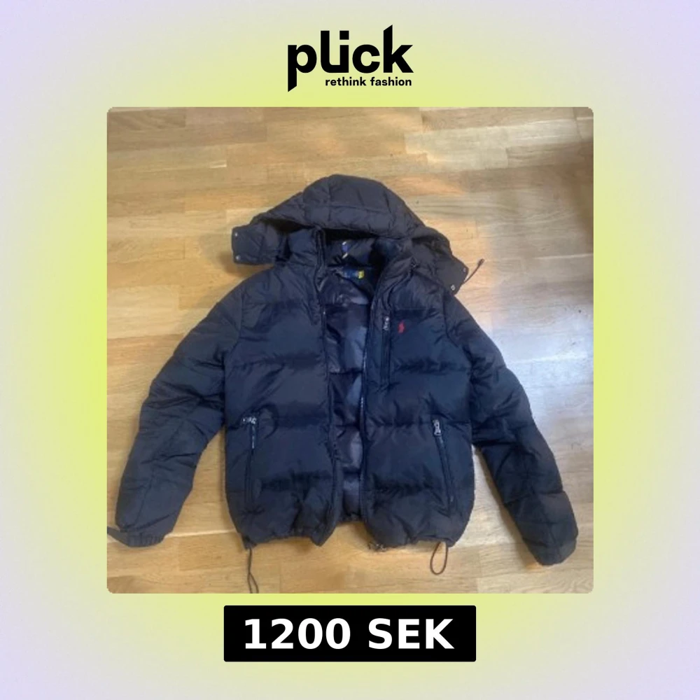 Säljer en svart dunjacka från Ralph Lauren med huva och dragkedja. Jackan har långa ärmar och två fickor med dragkedjor. Perfekt för kyliga dagar. Rensar garderoben så säljer billigt