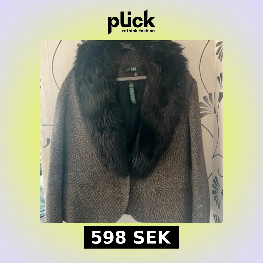 Snygg brun kavaj med en lyxig fuskpälsdetalj runt kragen från Ralph Lauren. Perfekt för att ge en elegant touch till din outfit. Kavajen har en klassisk passform och är tillverkad i ett stilrent mönster.