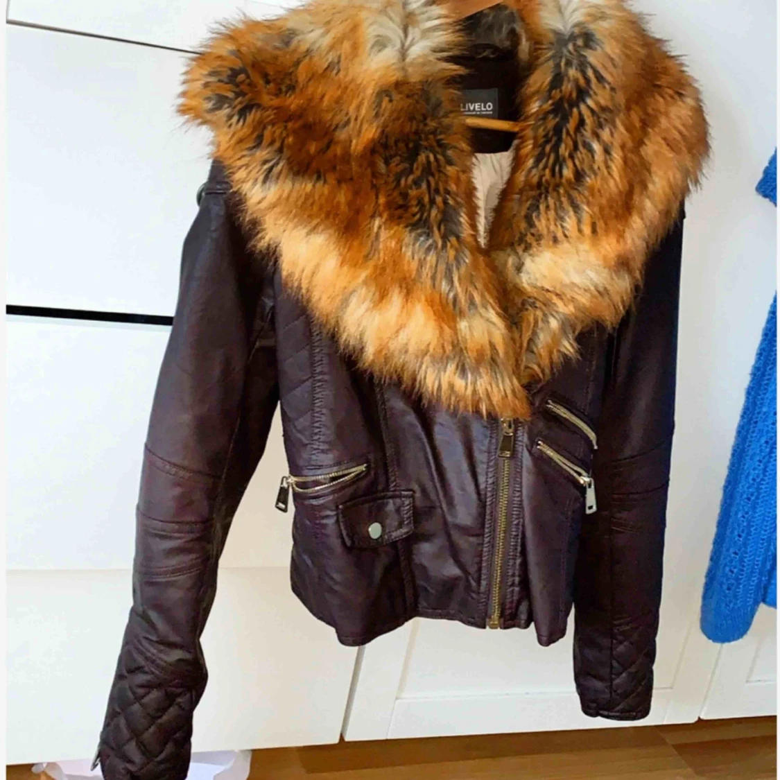 Jacka med pälskrage i storlek S använt ett fåtal gånger därav de godaskicket (Ej äkta päls)