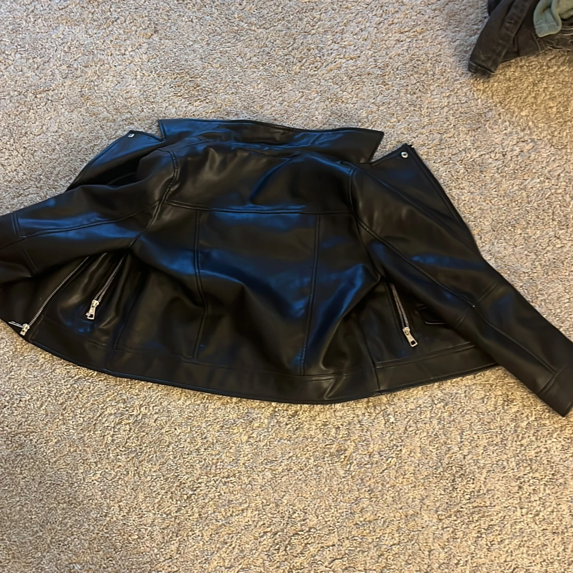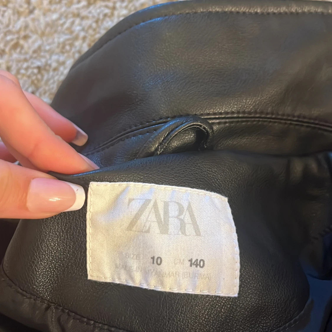 Säljer en snygg svart skinnjacka från Zara. Den har en klassisk bikerstil med dragkedja och knappar. Perfekt för att ge din outfit en cool edge. Jackan är i bra skick och redo för nya äventyr!