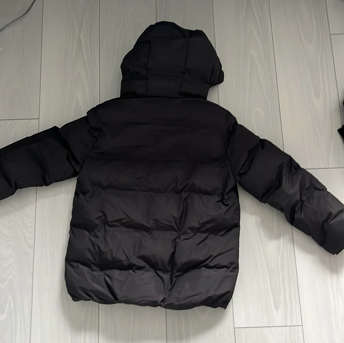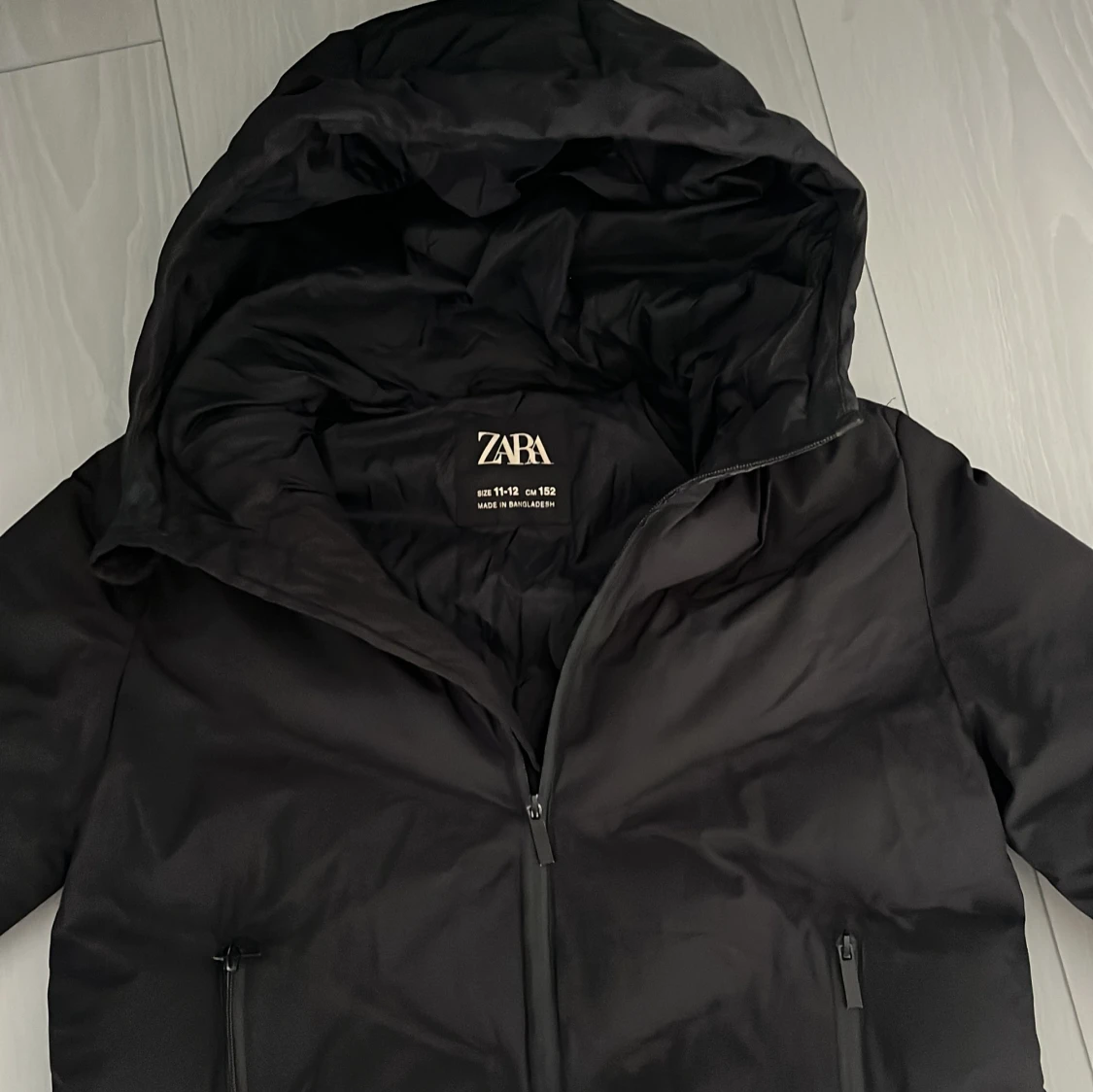 Säljer en svart pufferjacka från Zara i storlek 152. Jackan har en stor huva, två fickor med dragkedja och hel dragkedja framtill. Perfekt för kalla dagar och riktigt skön att bära. Enkel, stilren och passar till det mesta.