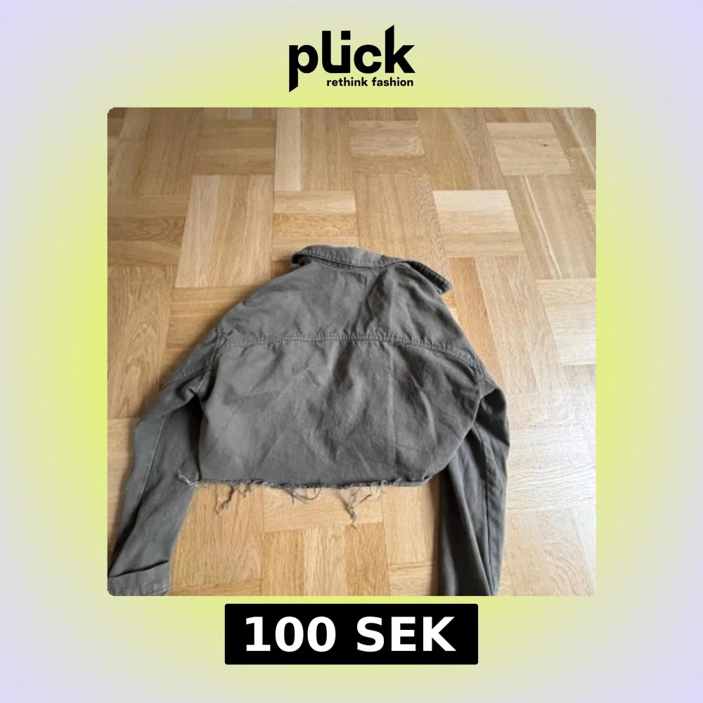 Säljer en grå croppad jacka från Zara med fransiga kanter. Jackan har långa ärmar och två bröstfickor med knappar. Perfekt för en avslappnad stil.