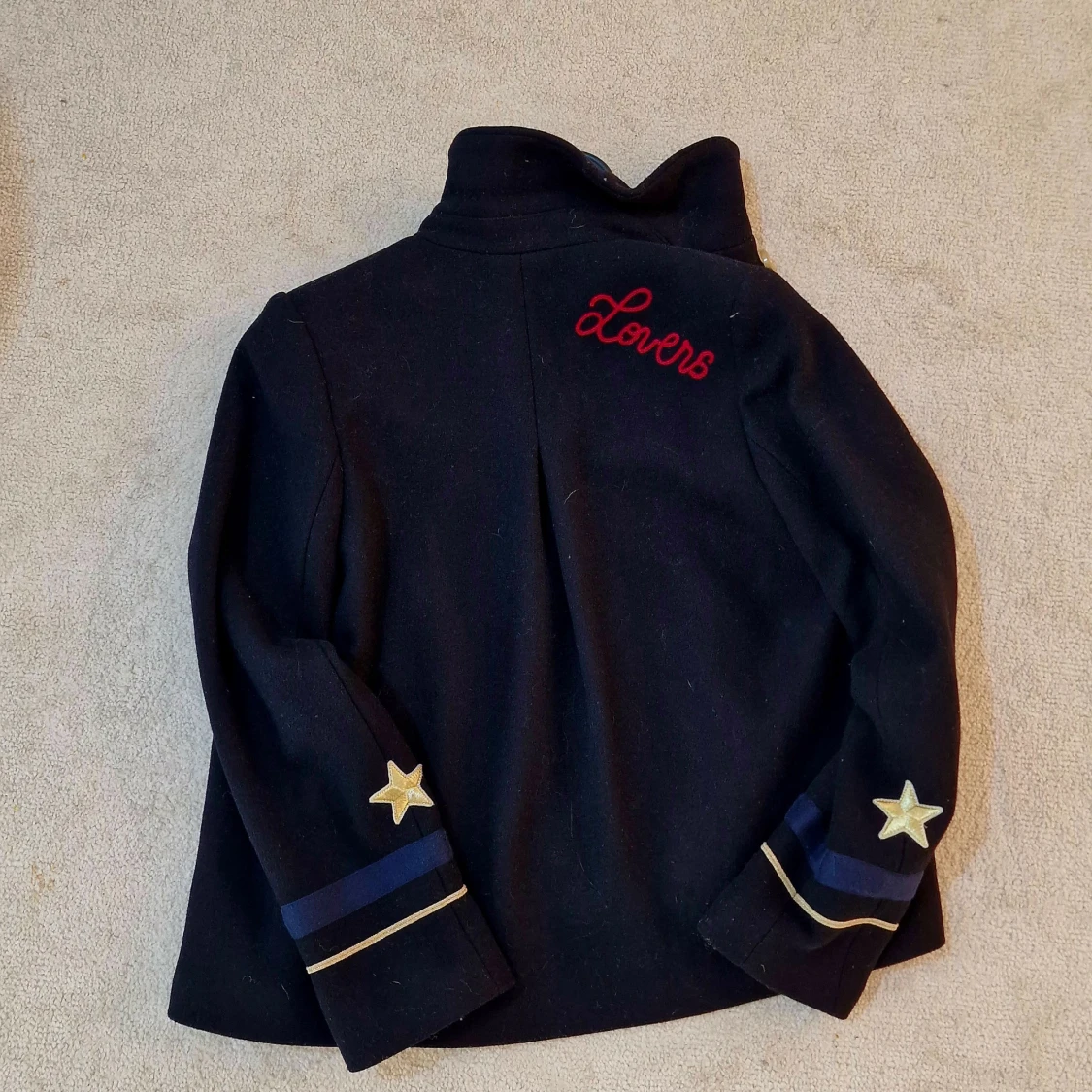 Stilren marinblå kappa med dubbla rader guldknappar framtill, broderad text 'Lovers' i rött på ryggen och coola detaljer som guldstjärnor och blå/guldfärgade band på ärmarna. Kappan hög krage och är helfodrad för extra komfort.