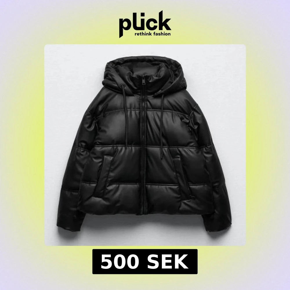 Snygg svart pufferjacka från Zara med dragkedja och huva. Jackan har en modern look och är perfekt för kyligare dagar. Den har en quiltad design och praktiska fickor framtill.