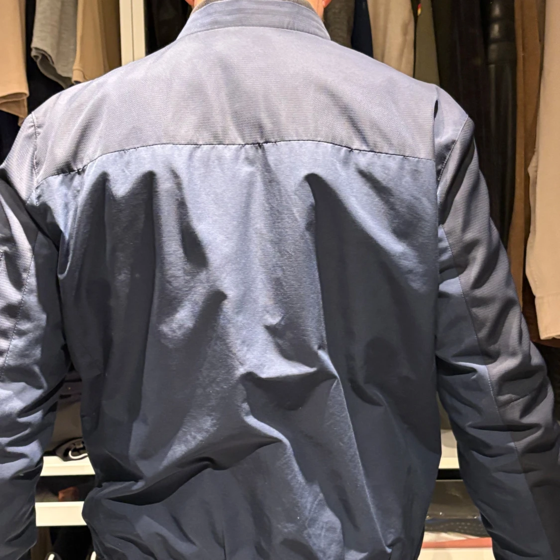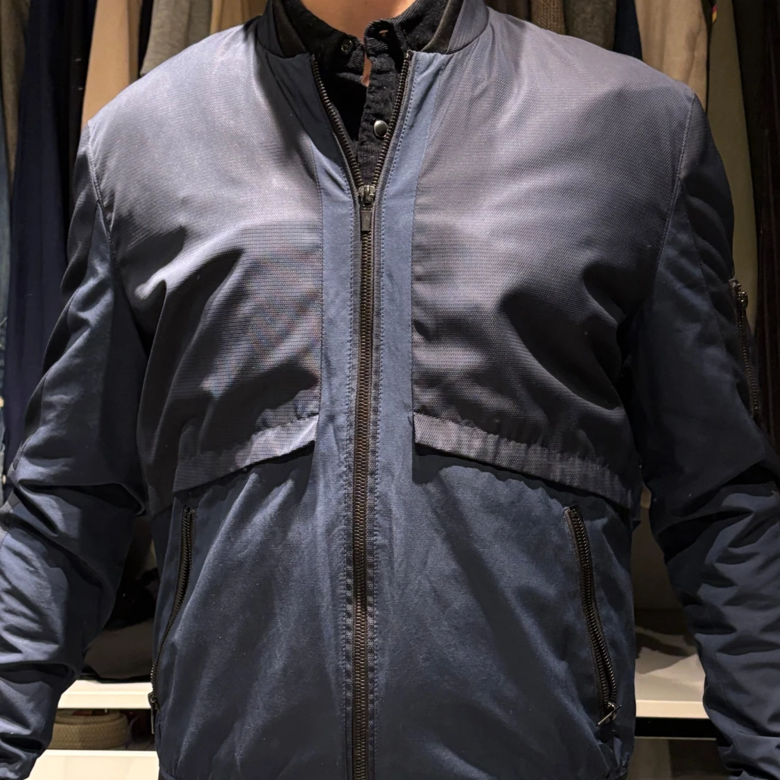 Snygg blå jacka med dragkedja framtill och ribbad krage. Jackan har en stilren design med långa ärmar och praktiska fickor med dragkedja. Perfekt för en cool och avslappnad stil.