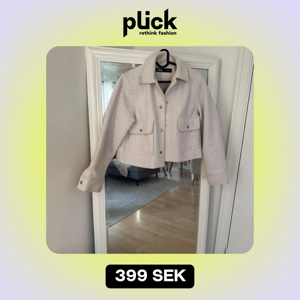 Säljer en snygg beige jacka från Zara i storlek S. Jackan har en stilren design med knappar framtill och två stora fickor. Perfekt för höst och vår, och den är i mycket bra skick. Passar både till vardags och lite finare tillfällen.
