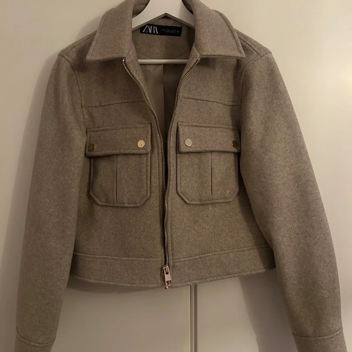 Snygg beige jacka från Zara med dragkedja och två framfickor med knappar i guld. Super fin vårjacka! 🥰