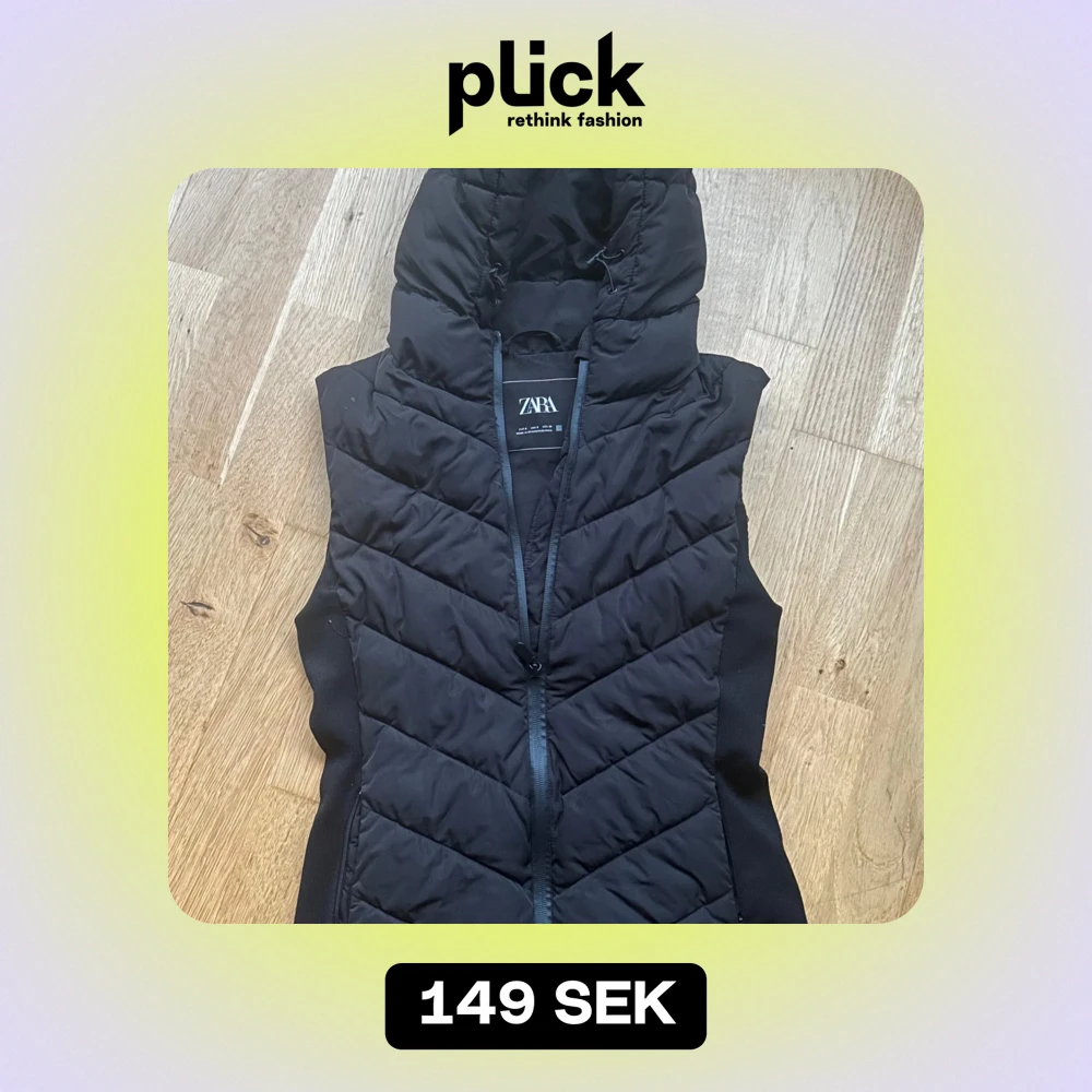 Säljer en snygg svart väst från Zara i storlek S. Västen har en dragkedja framtill och en mysig huva. Perfekt för höst och vår när du vill hålla dig varm men ändå se stilren ut. Passar både till vardags och lite mer uppklädda tillfällen. Västen är bara använd nån enstaka gång så i nyskick.