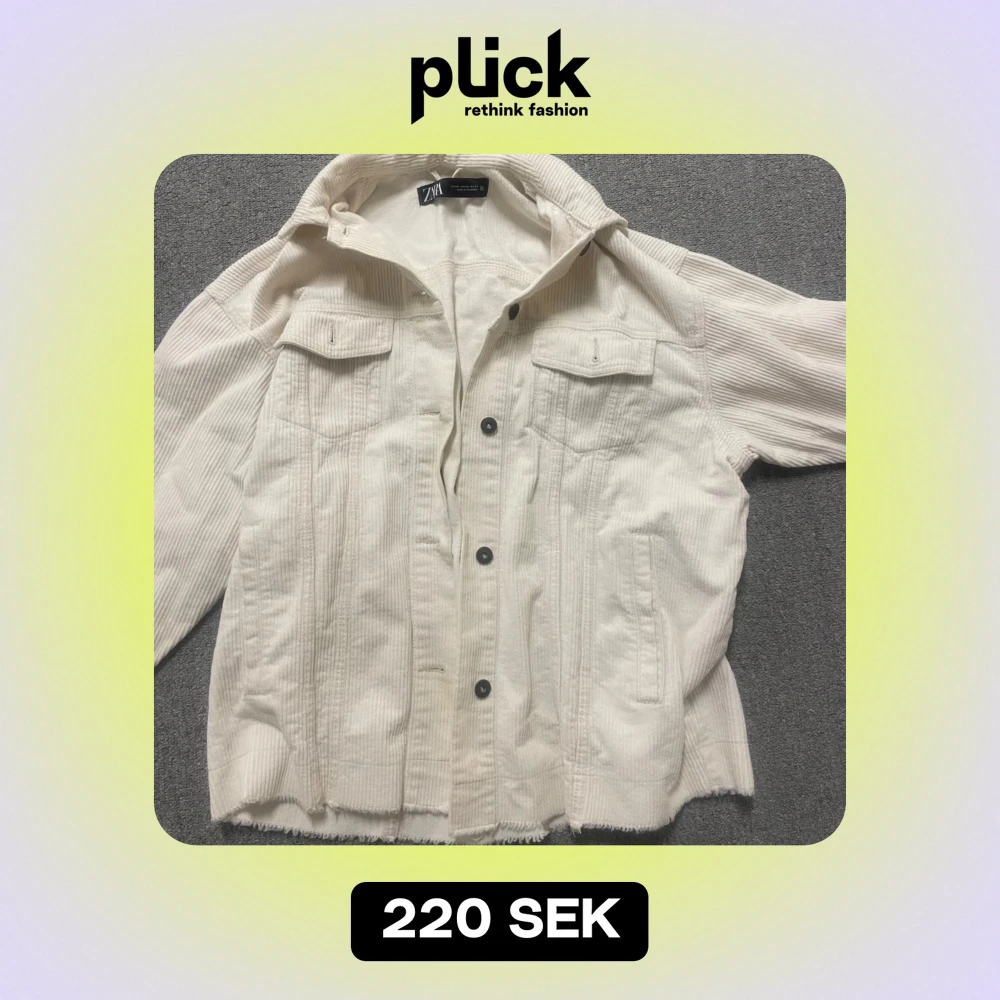 Säljer en stilren vit/beige manchesterjacka från Zara. Jackan har knappar framtill och två bröstfickor med lock. Perfekt för en avslappnad look. Storlek xs men är oversize så passar xs-m beroende på hur man vill att den ska sitta