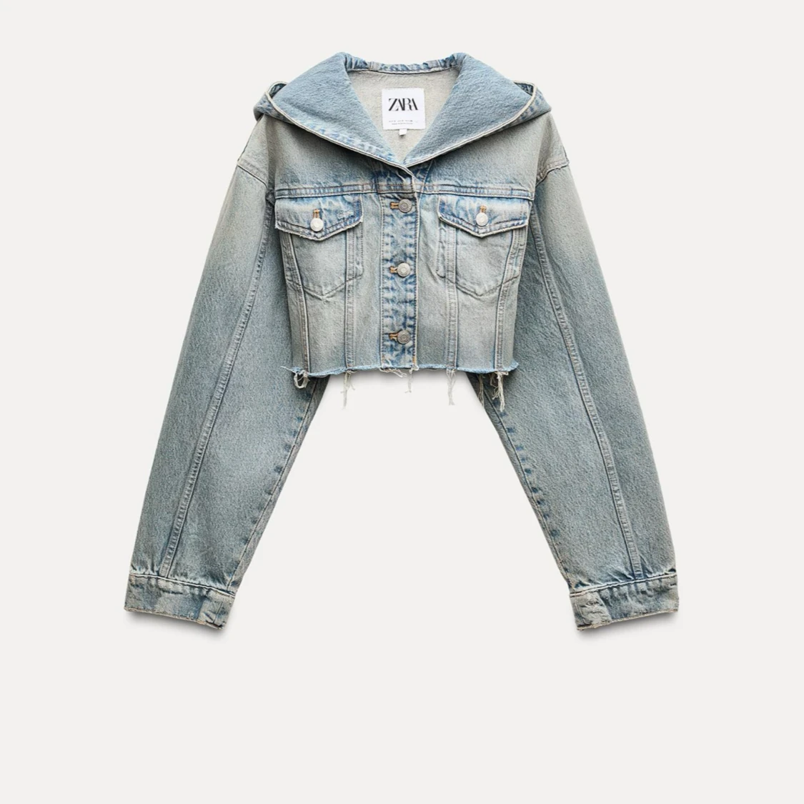 En kort/crop denim jacka från zara i storlek S. Oanvänd med prislapp på. Ordpris.399kr