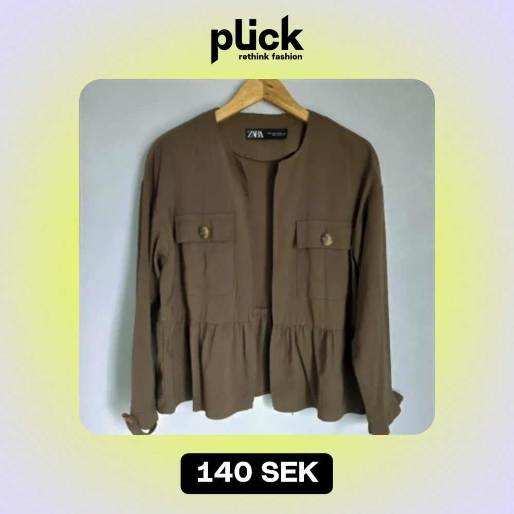 Säljer min fina gröna jacka från Zara som är väldig tunn och skön med volang där nere🌸I fint skick, dock har den liten fläck på insidan men tror det går bort i tvätten🥰det funkar bra att trycka på köp nu