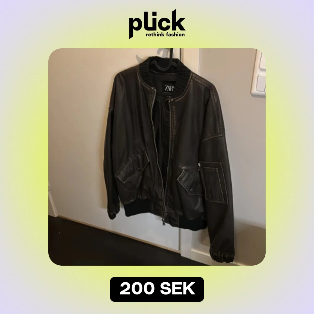 Oversized skinnjacka från Zara i tvättad svartbrun färg. Använder ej längre Fortfarande bra skick, har använt 2 ggr då den är lite för stor på mig.🤍🤍