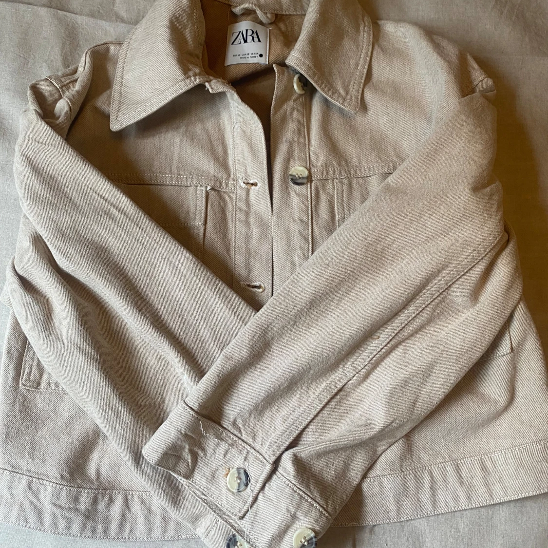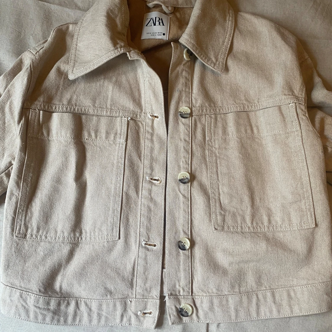 En zara jacka som använts ett fåtal gånger. På tredje bilden ser du att det finns en blå fläck som antagligen går bort i tvätten och den syns knappt.