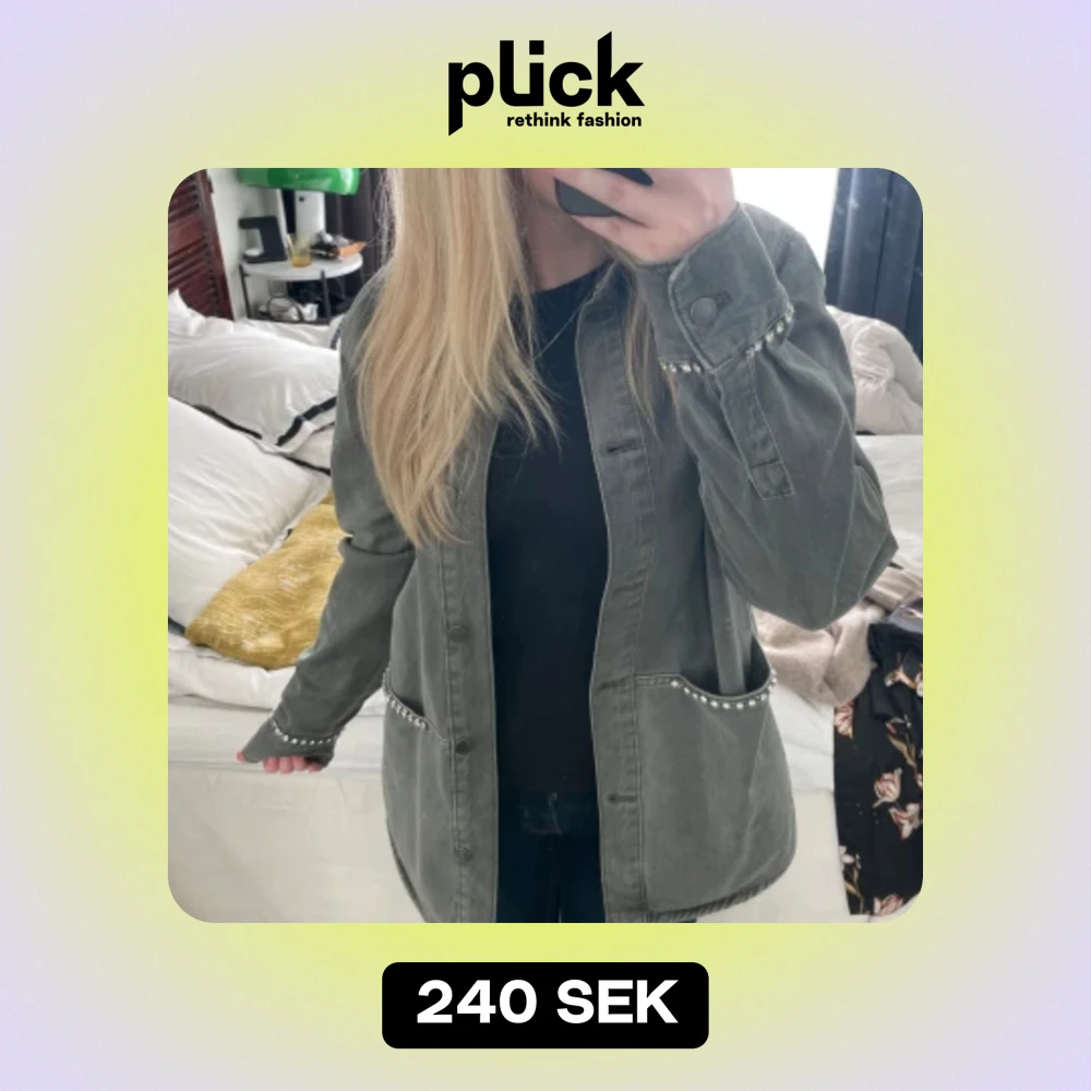 Overshirt i jeans tyg från Zara. Den har stenar på kragen, ärmarna och på fickorna.