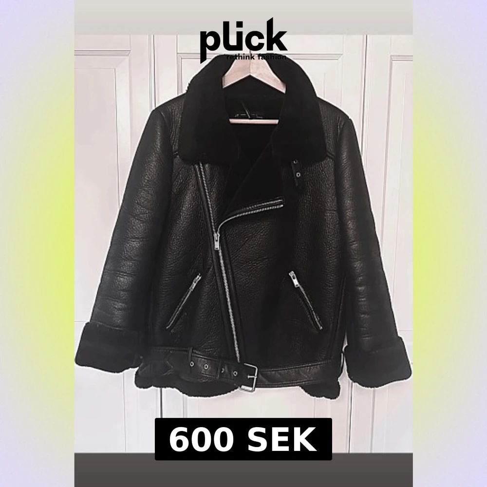 Säljer en svart shearling jacka med fordring. Jackan är ifrån zara och har använts sparsamt, öglan som används för att hänga upp jackan med är trasig.
