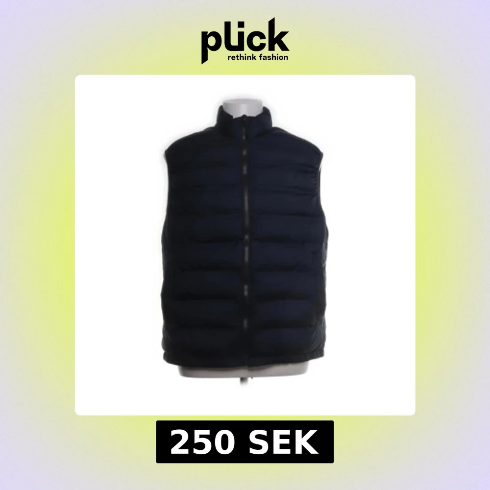 Snygg mörkblå dunväst från Zara med hög krage och raka, quiltade paneler. Västen har en hel dragkedja framtill och är perfekt för lager-på-lager. Enkel, stilren design som funkar till många olika looks. Säljer den pågrund av st, stor för mig! Priset kan diskuteras