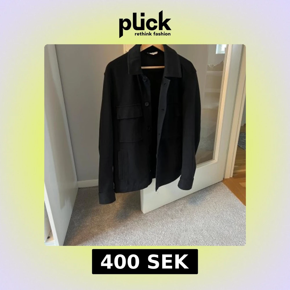 Snygg svart overshirt med knappar och stora fickor framtill. Perfekt för lager-på-lager-stilen. Den har långa ärmar och en klassisk krage. En stilren och mångsidig jacka för olika tillfällen. Riktigt bra skick men säljer nu denna eftersom den är för liten för mig!