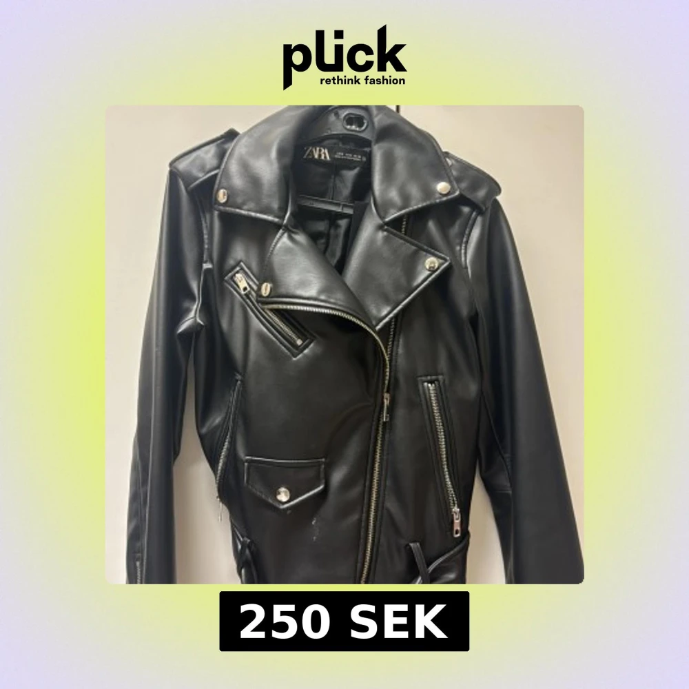 Snygg svart skinnjacka från Zara med klassisk bikerstil. Jackan har flera silvriga dragkedjor, stora slag och bälte i midjan. Perfekt för dig som vill ha en edgy look med coola detaljer och stilren passform.