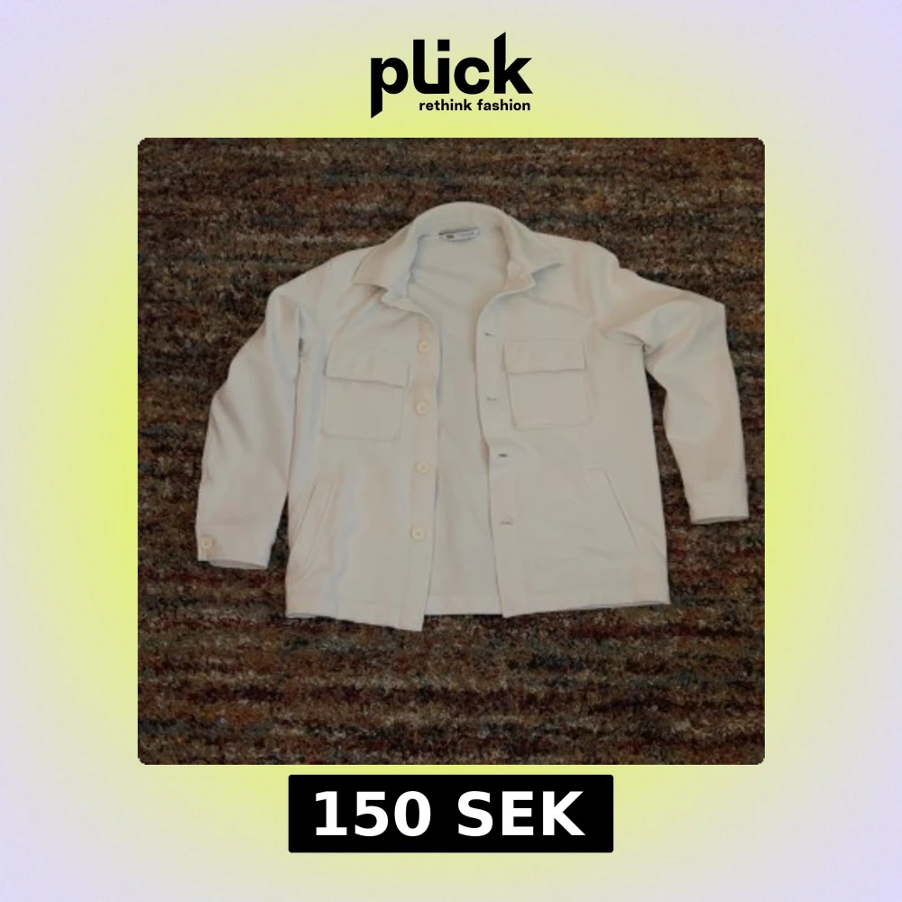 Säljer en stilren vit overshirt från Zara med klassisk krage, stora bröstfickor med lock och knäppning framtill. Jackan har raka ärmar och är perfekt att slänga över en hoodie eller t-shirt för en clean look.