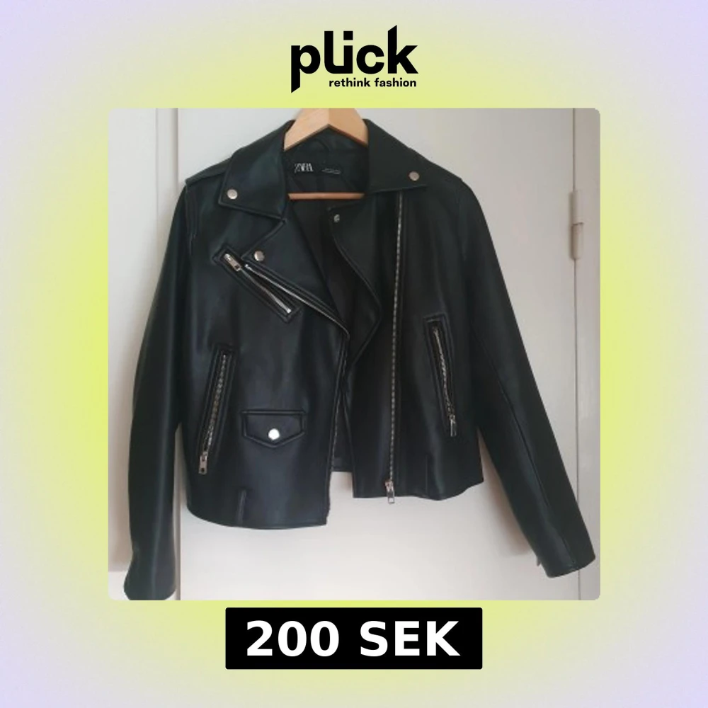 Snygg svart från Zara med dragkedjor och knappar. Jackan har en klassisk bikerstil med asymmetrisk dragkedja och flera fickor. Advädad 3x