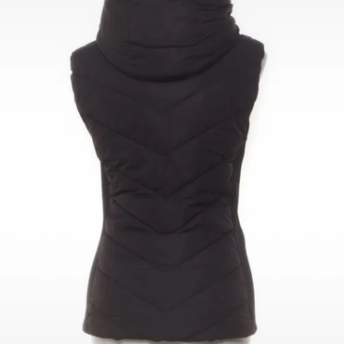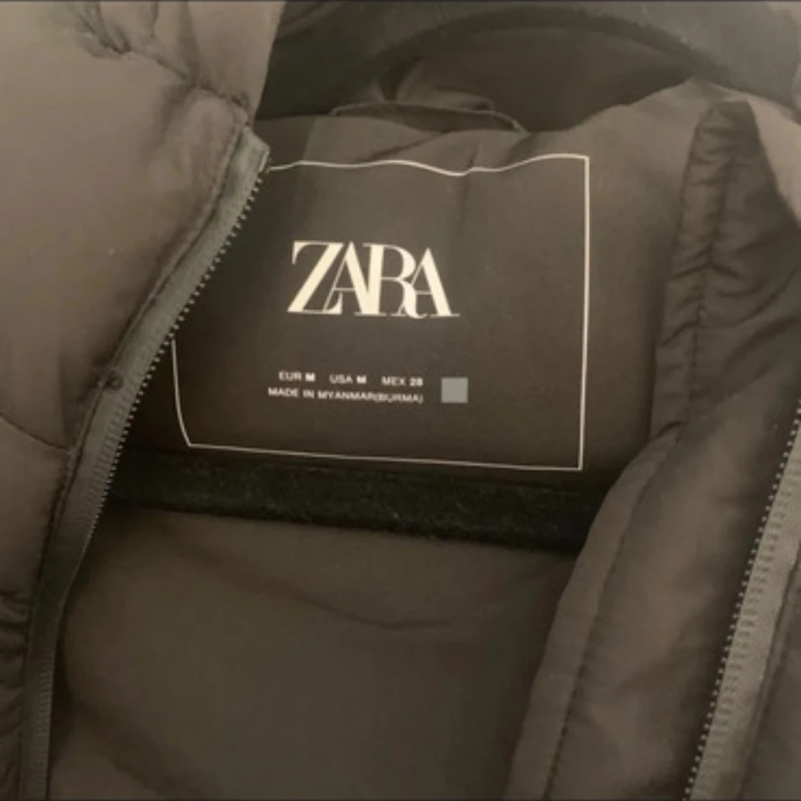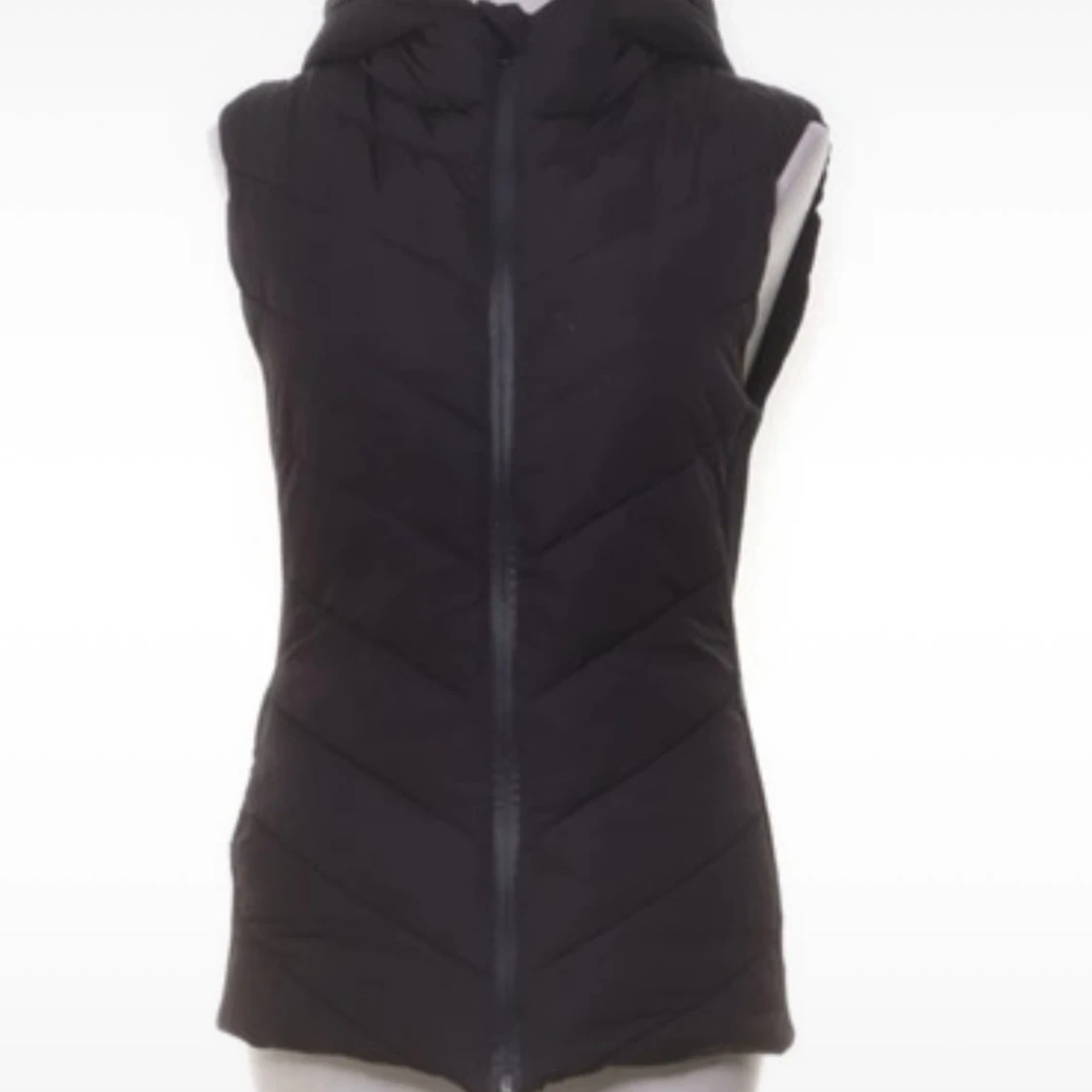 Snygg svart dunväst från Zara med dragkedja framtill. Perfekt för kyligare dagar med sin quiltade design och huva.