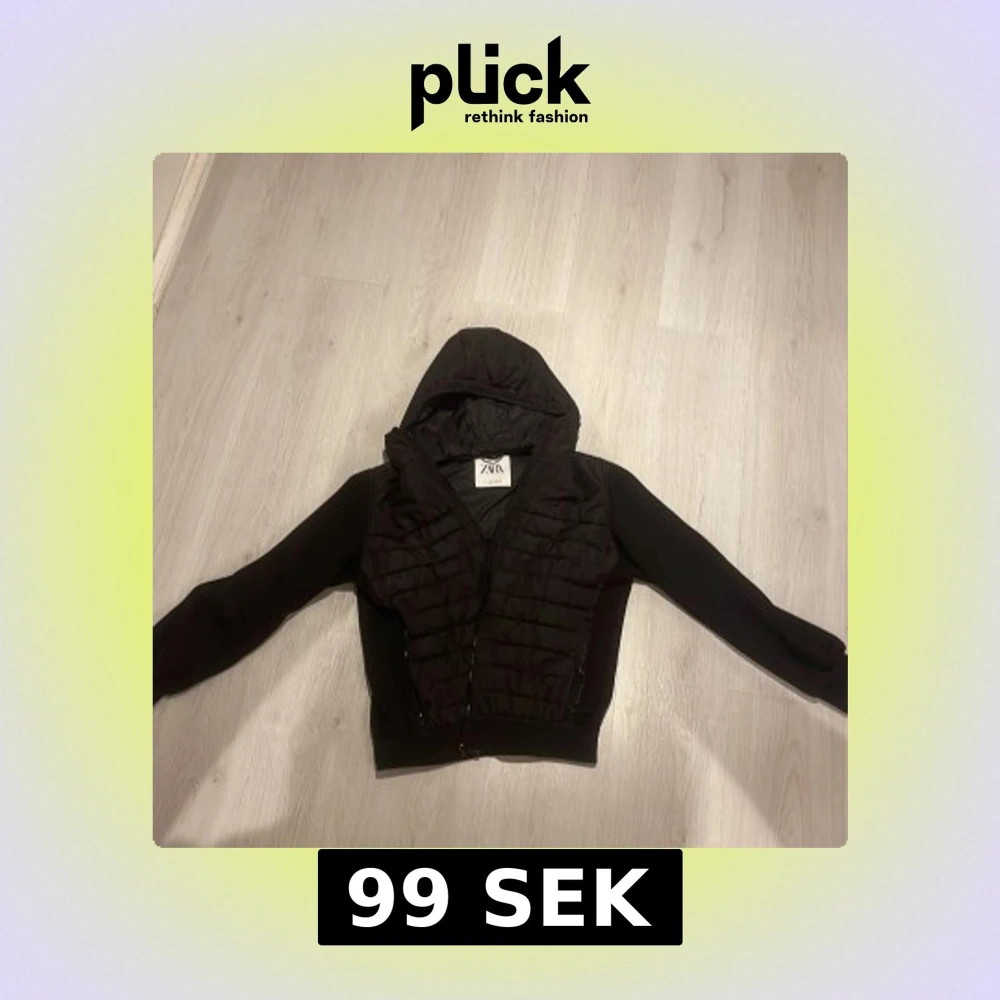 Snabb leverans. Jackan säger att den är L men jag tycker det är M så snälla ta Hansyn. Svart pufferjacka från Zara med huva och quiltad framsida. Jackan har dragkedja, långa ärmar och en clean look. Materialet är en mix av polyester och syntet, vilket gör den lätt och skön. Perfekt för dig som gillar streetstyle och vill ha en jacka med snygg passform.