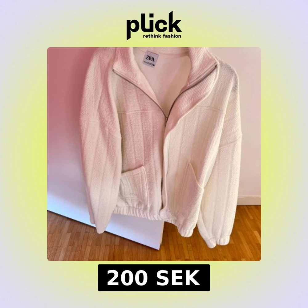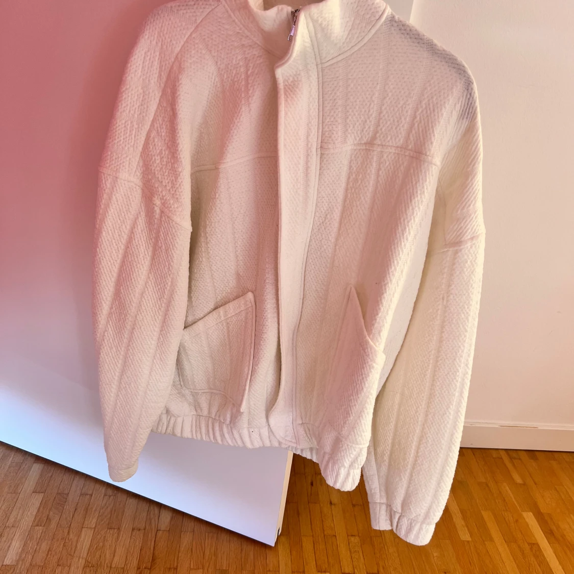Mysig vit mönstrad jacka från Zara med dragkedja framtill, höga fickor och ståkrage. Jackan har en oversized passform och är tillverkad i ett coolt-material som ger en cool och avslappnad vibe.
