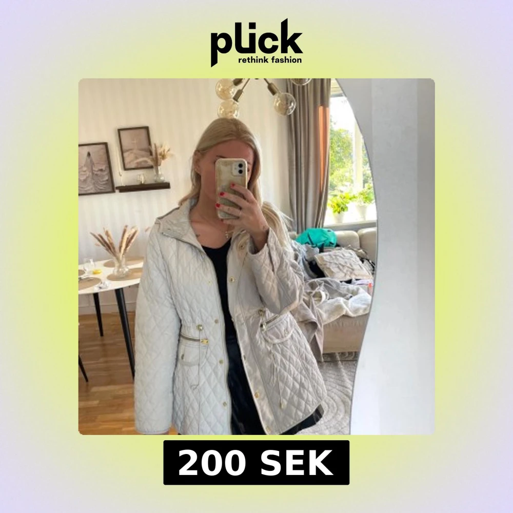 Säljer en quiltad beige jacka med huva och guldfärgade detaljer. Jackan har dragsko i midjan, fickor med både dragkedja och knappar samt långa ärmar. Perfekt för dig som vill ha en snygg och praktisk jacka till höst och vår. Storlek M . Köpt vintage så vet inte märke